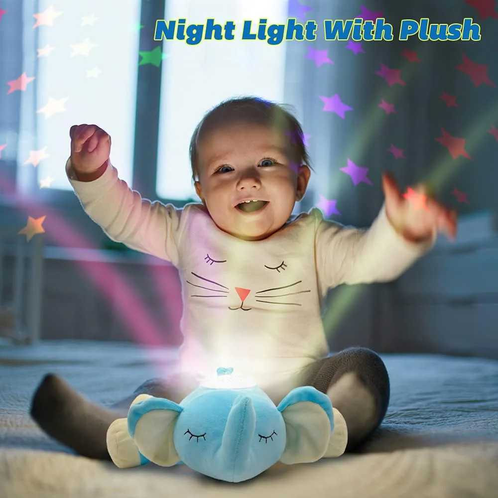 - MULTIFUNCTIONAL: You can either use it as a night light projector, or just a music soother, the sound machine and the light are working independently, very easy to play individually or together. Powered by 3 AAA Batteries, included, it has a 30 minutes auto-off timer, don't need to worry to turn-off after baby falls asleep. And you can remove the projector from plush, this makes easy to clean and take it anywhere.
