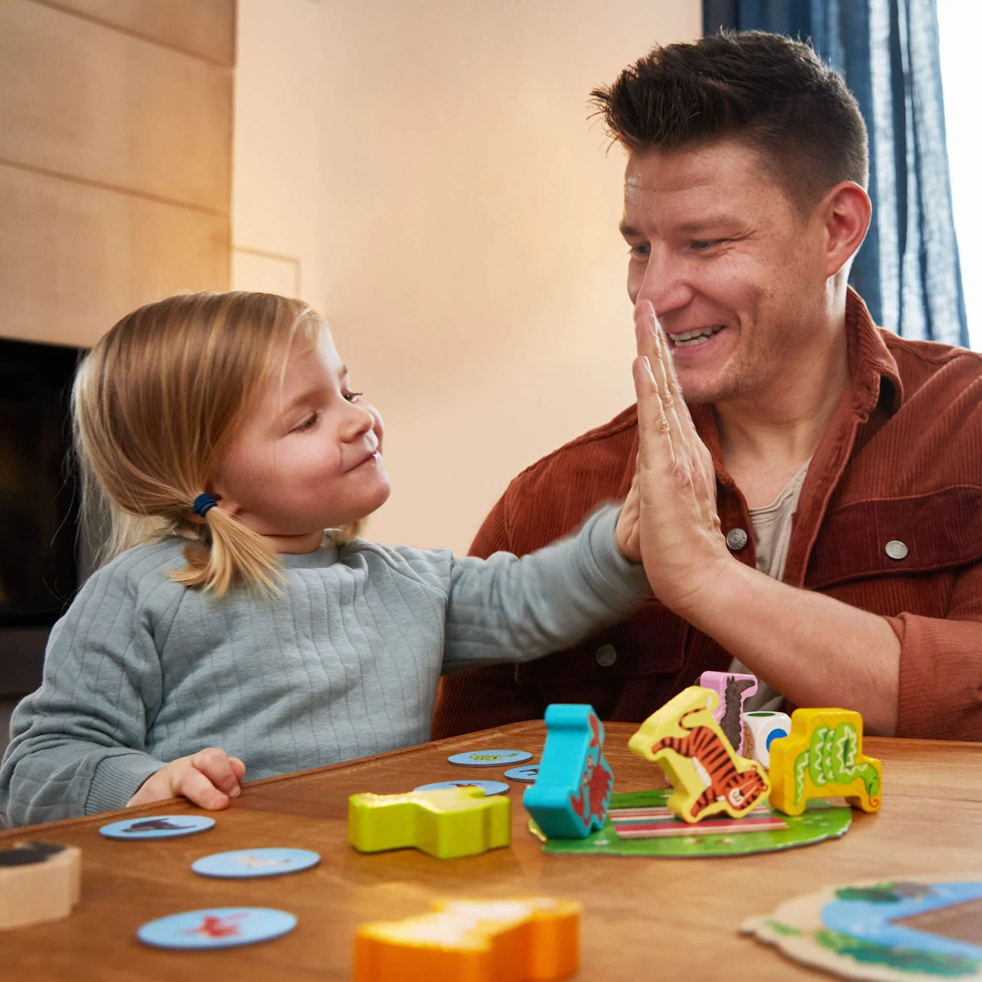 - Three fun animal games in one means three times the fun for your toddler! Features two dice games and one designed for cooperative play.