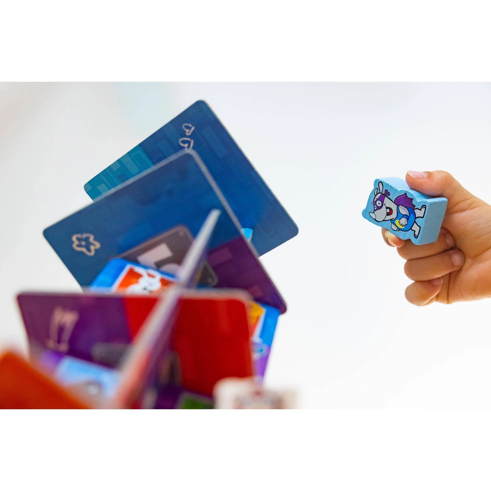 Rhino Hero Junior is a superhero in training who aims high. In three different games, the children practice their fine motor skills, work on a basic understanding of numbers and quantities, and also train their memories. Floor by floor, the fun and learning curve just gets steeper and steeper, until the heroic rhino reaches the top and the children win together.