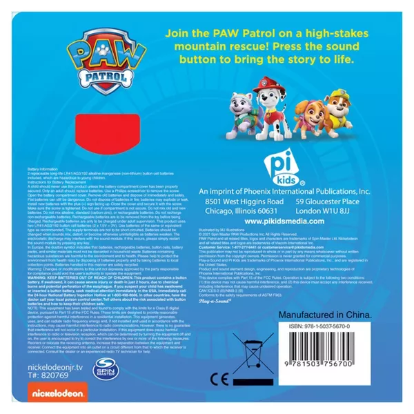 Join the PAW Patrol on a high-stakes mountain rescue! Press the sound button to hear the pups bark while you read the exciting story.
