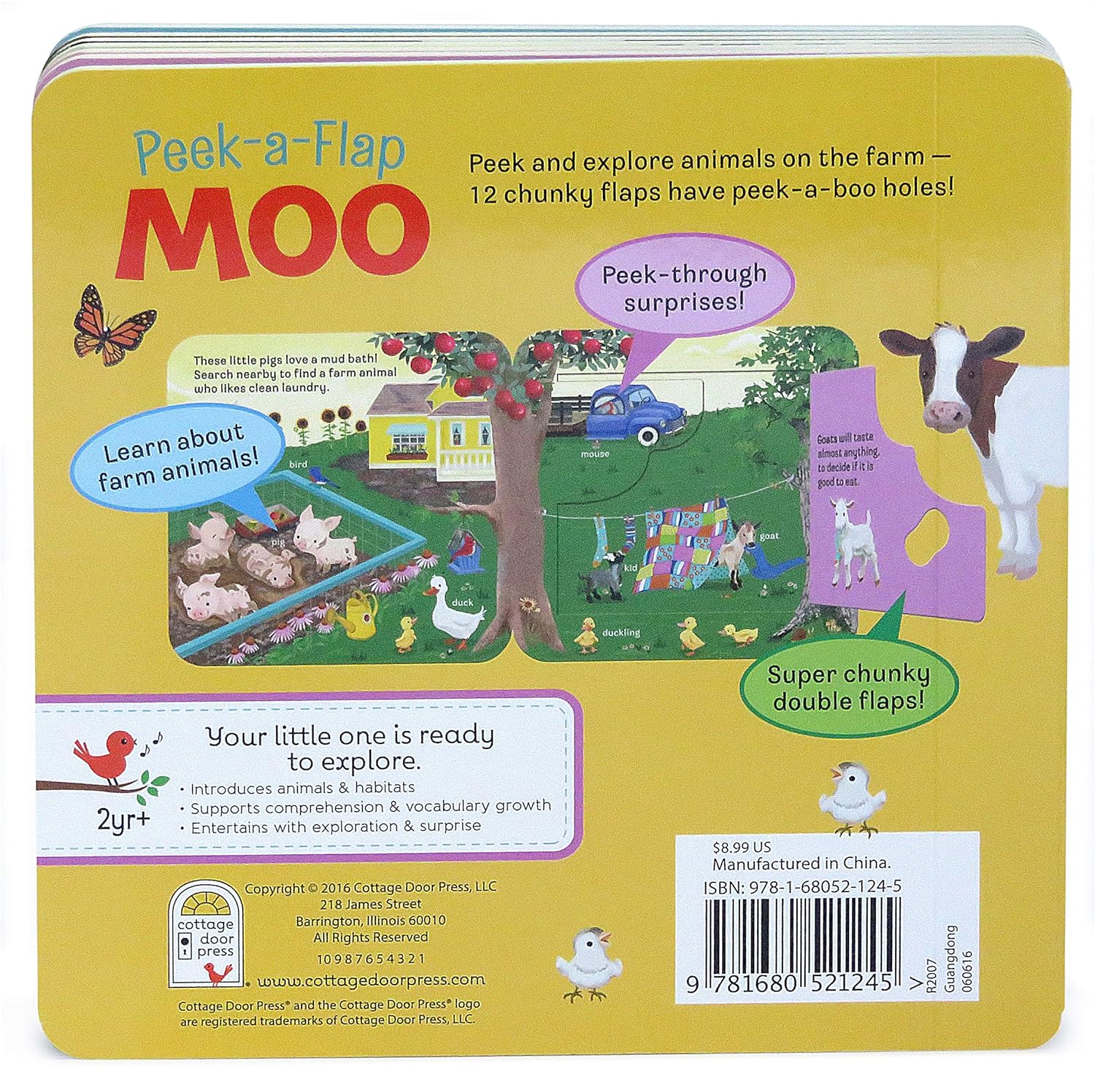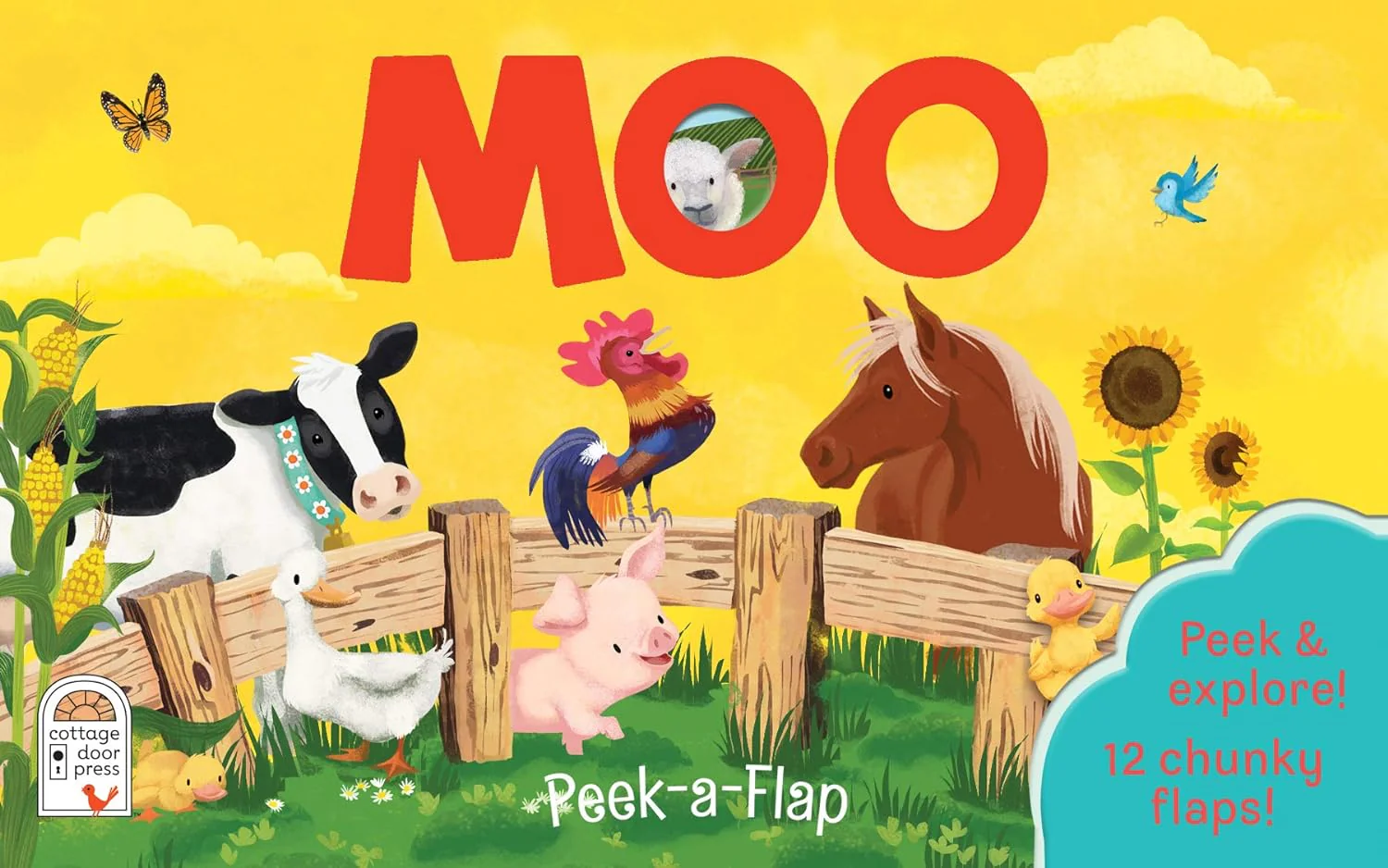 - Meet all the animals as you peek and explore around a farm with the Peek-A-Flap "Moo" Board Book
