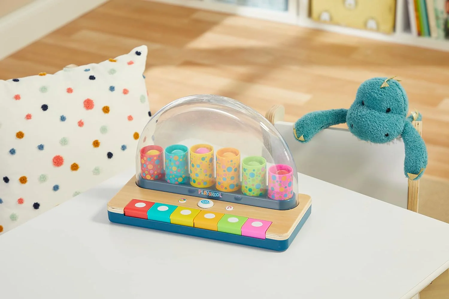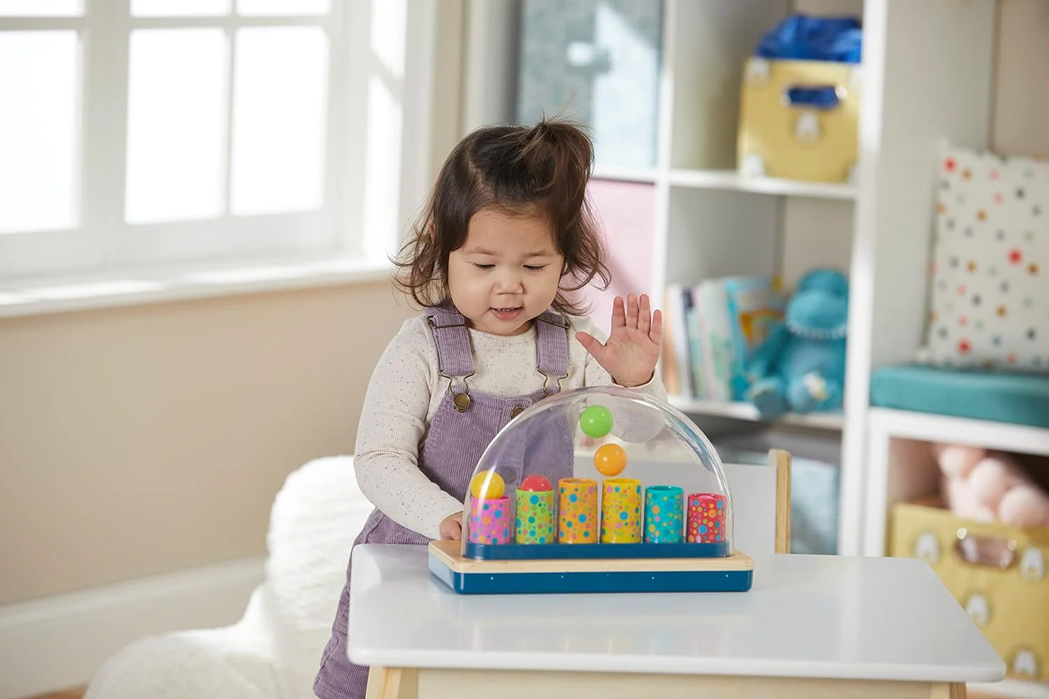 Pop, Pop, Pop-A-Tune! This colorful piano entertains little ones with its exciting popping action. Press a key and watch a ball pop up like magic! Your child will experience the joy of making music while learning color recognition and cause and effect. The more your little virtuoso presses the keys, the more the colorful balls pop up and bounce! Little Wonders is all about inspiring classic play and encouraging new discoveries that help children learn and grow!
