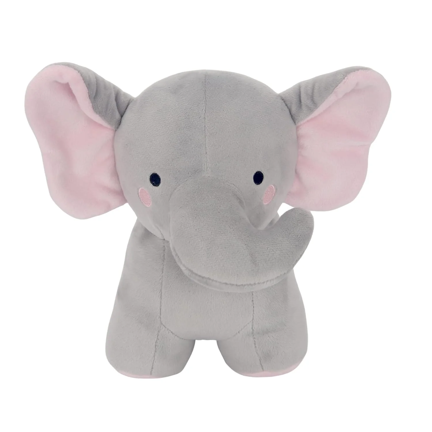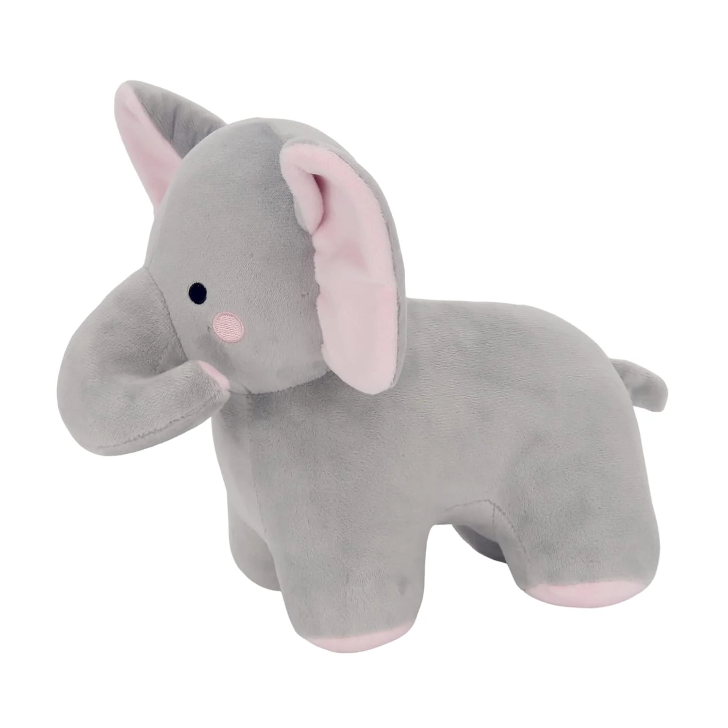 Meet Cherry. She is a very cute gray elephant with large floppy pink ears. She is approximately 8" tall and 9" long and is made in a soft cuddly velour. Her eyes and cheeks are embroidered making her completely baby safe. She is sure to be your little one's Bff.