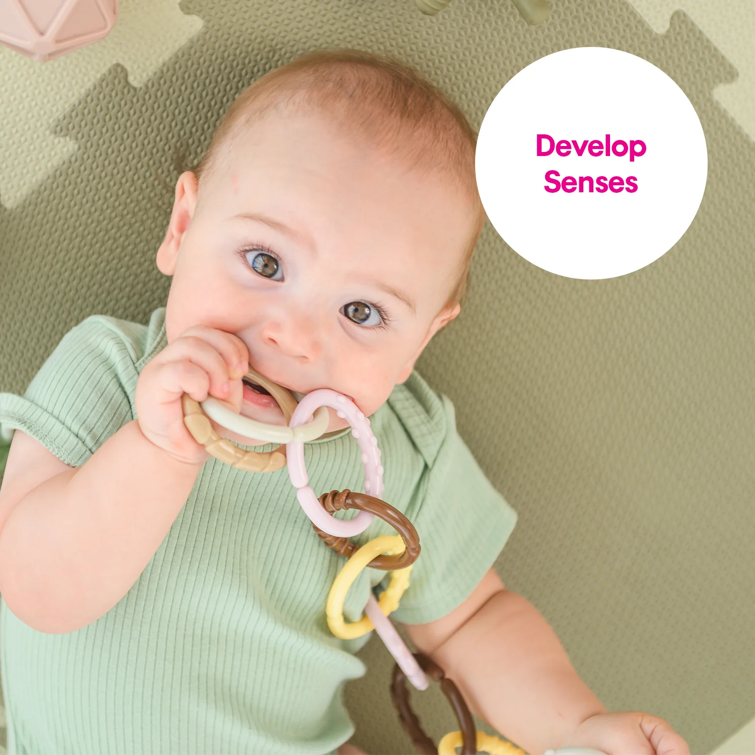 - DEVELOP TACTILE SENSES: Nubby texture is enticing and offers therapeutic play, inviting plenty of exploration. Encourage your child to explore their senses, and promote a natural desire to reach out, touch and experience different contrasts, textures, shapes and bright colors.