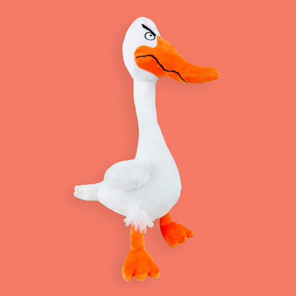 There is nothing silly about this goose. You CANNOT make her laugh, so DON’T EVEN TRY! A hilarious picture book from late-night host Jimmy Kimmel. Just as humorous as the book, comes this matching plush Serious Goose. Measuring 14” tall, this goose has bright white plush with bold contrasting embroidery, a strong expression, and an articulated neck. Perfect for an interactive storytime or posed on a shelf. Try not to laugh with Serious Goose!