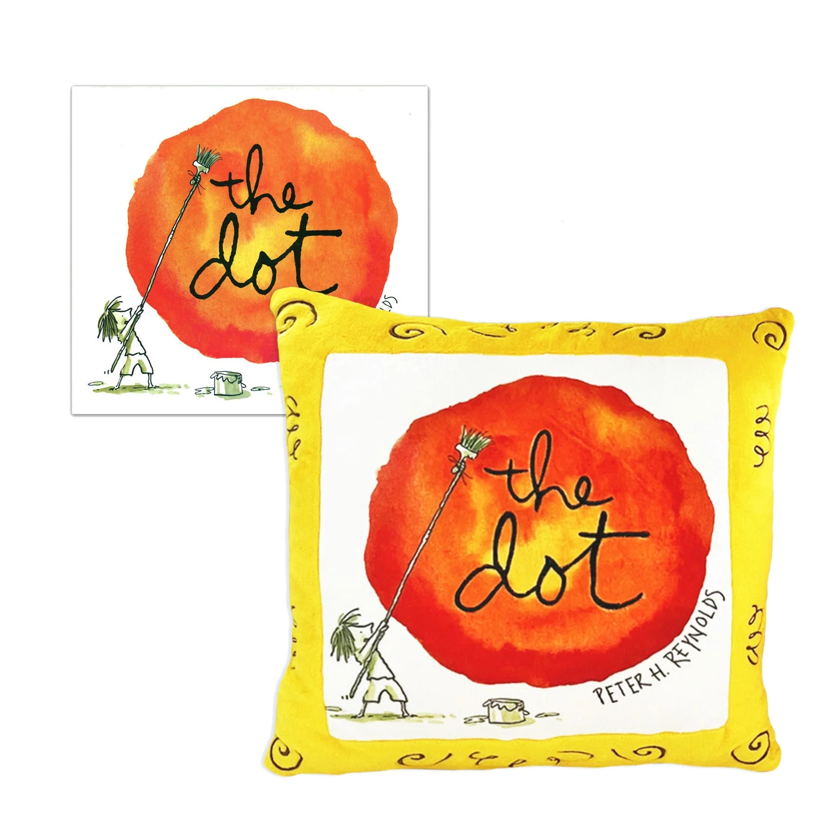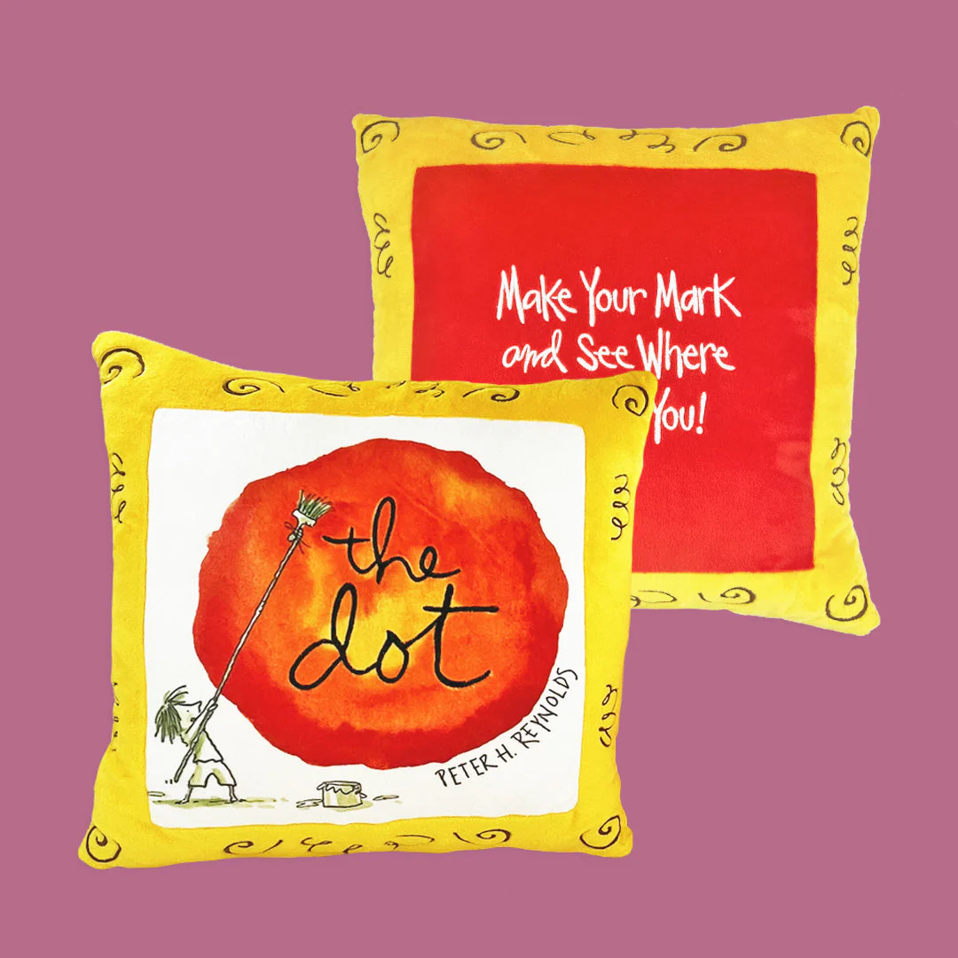 Our Cover Stories series launches with the bestselling book, The Dot, by Peter H. Reynolds. This simple, witty, free-spirited story about how one dot can lead to endless creativity, can now be celebrated with the addition of this remarkable plush. With dynamic colors and artwork directly from the book’s cover, fans will appreciate this statement piece. Add to a reading chair, showcase on a shelf, or snuggle up during storytime. The Dot Cover Stories is here to inspire!