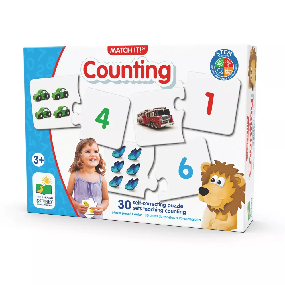 Pair a number and a countable picture with the Match It! Counting Puzzle Cards from The Learning Journey. The box includes 30 puzzle card sets, each containing 2 interlocking pieces.