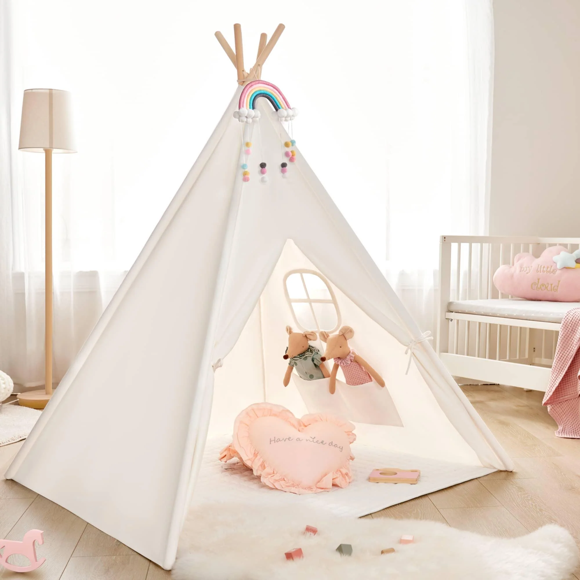 [STURDIER and SAFETY] With Heavier canvas for better texture and Thicker solid pine poles, our tent is made to last long and sturdier than any others. We take pride in giving children a healthier environment. This teepee is a pretty tent for kids.