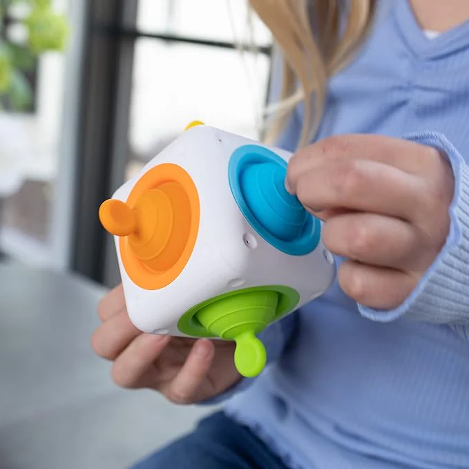 - Pull, pop, and discover! A sturdy rounded cube full of bubbles with tabs to grab and pull endlessly