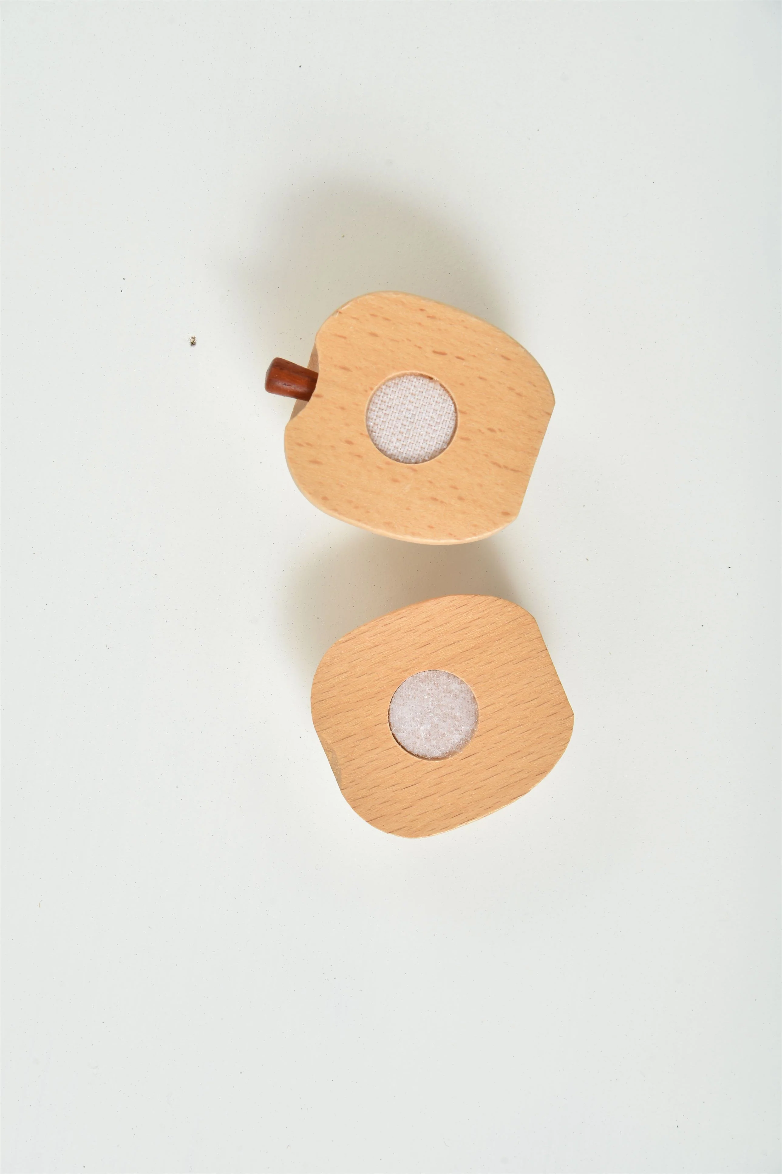 - 3 years & up. This wooden fruit set features sliceable fruit that makes a fun crunching sound when sliced. With so many pieces to cut and count, this is the ideal way to introduce concepts of whole, part, and fractions. Made using the highest quality materials and tested to be safe. Measures 2.75" x 9" x 9" packaged. Includes: 7 pieces of wooden fruit, 1 wooden knife, and 1 fruit crate.