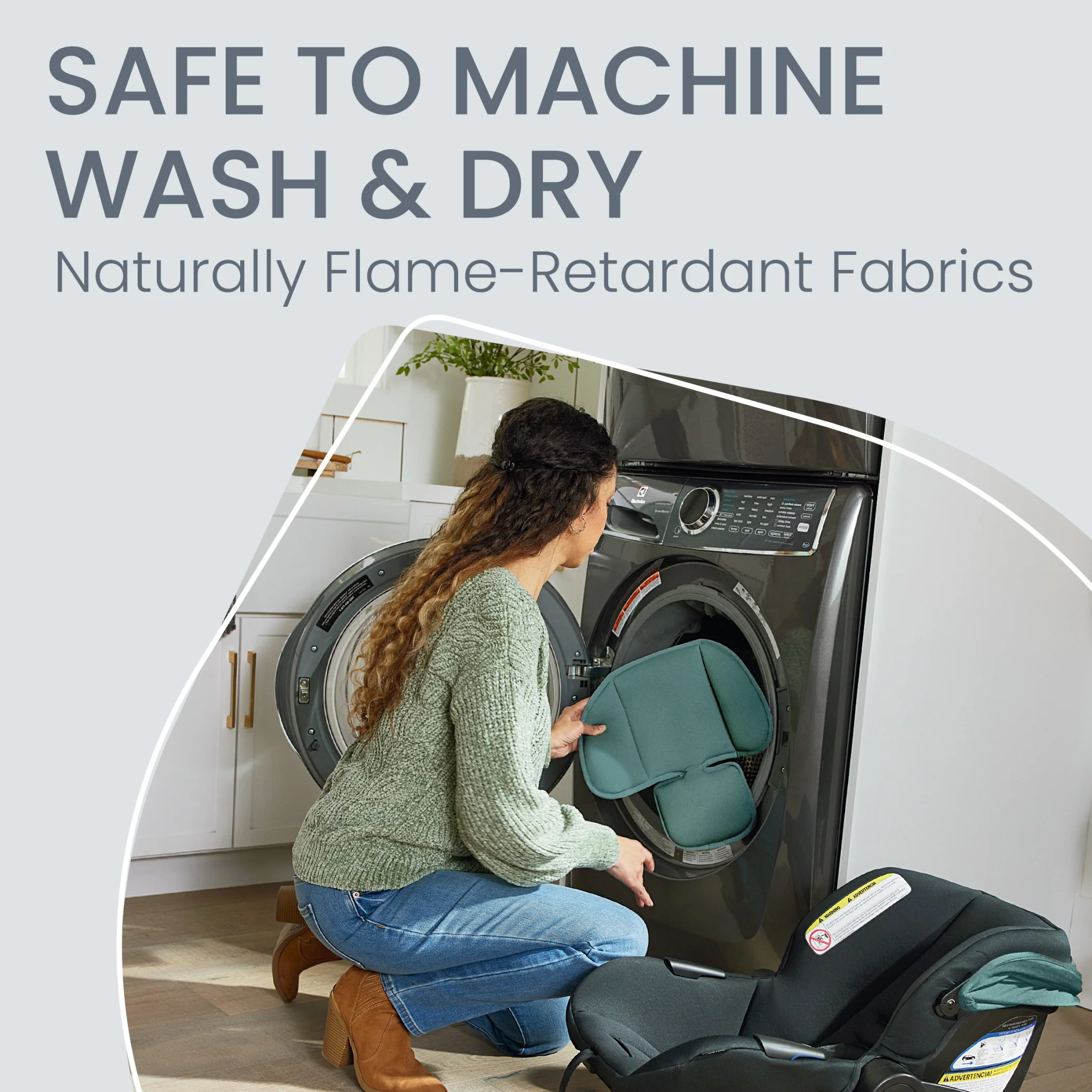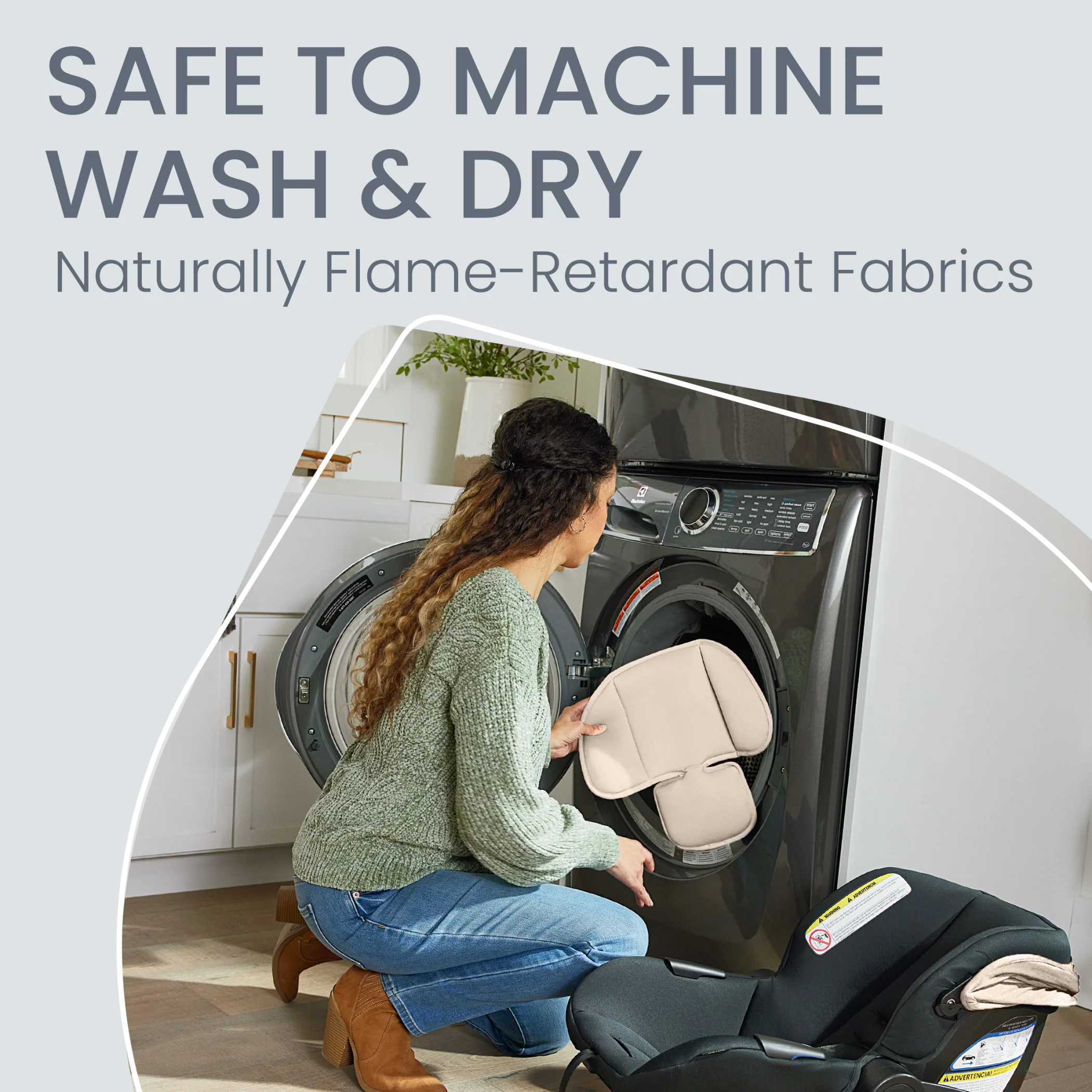 - WASHER AND DRYER FRIENDLY: The SafeWash car seat cover and stroller insert are naturally flame-retardant and safe to machine wash and dry