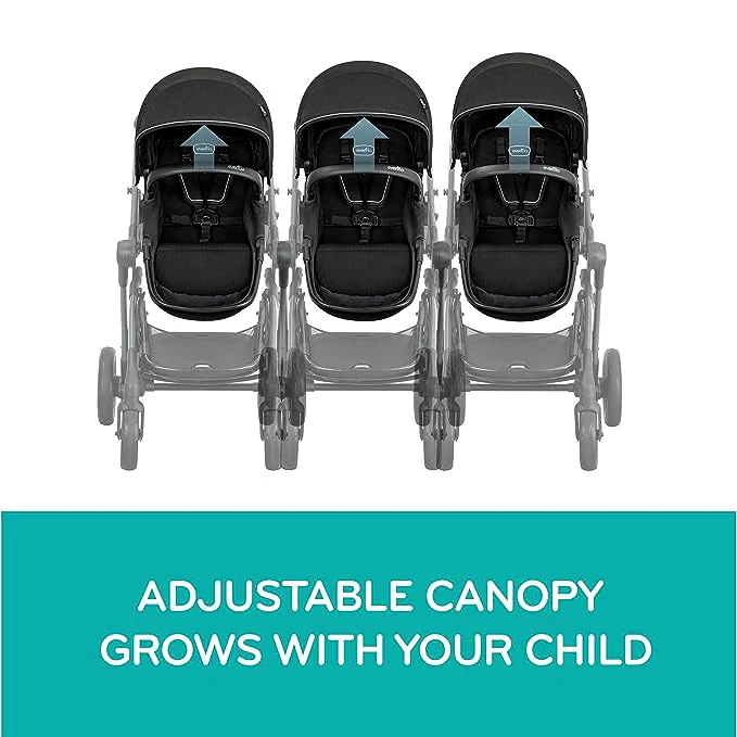 The Evenflo® Pivot Xpand™ Modular Travel System with LiteMax™ Infant Car Seat with Anti-Rebound Bar easily transitions from a single to double stroller without adapters or tools — simply slide up and flip out the integrated seat mounts to add a toddler seat! Attach two toddler seats, two infant car seats, or one of each.
