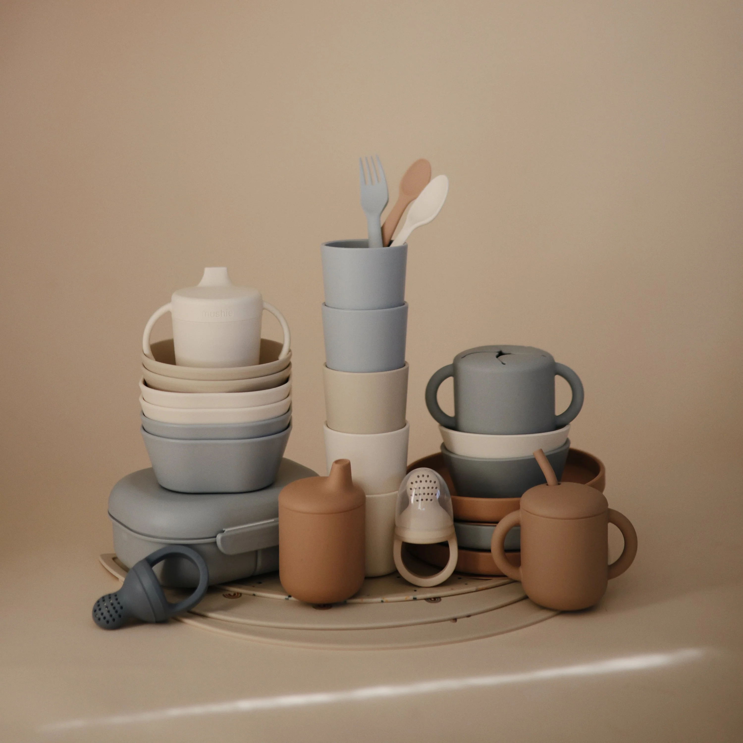 With soft colors and clean design, this plastic dinnerware cup set is simple and elegant, and easy for your baby to hold.