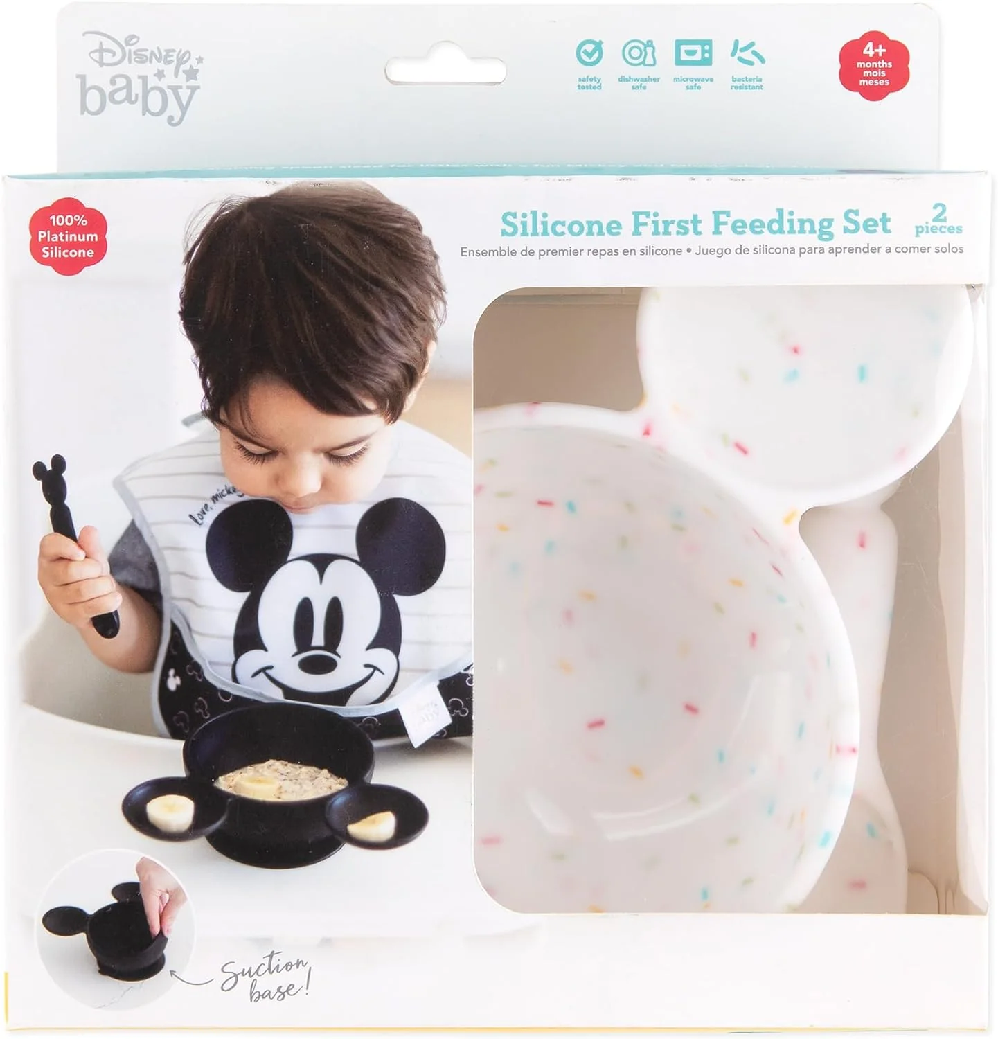 Disney Silicone First Feeding Set w/ Spoon: Mickey Mouse (Vanilla Sprinkle)