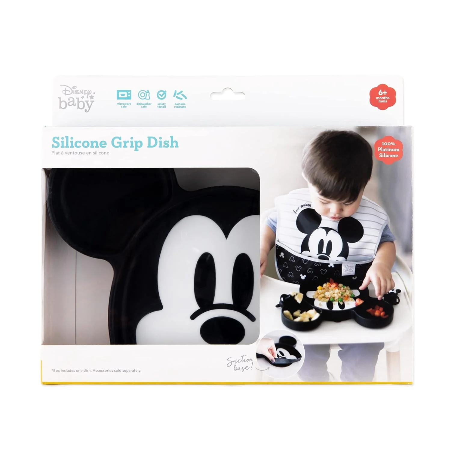 Styled in Mickey Mouse’s recognizable shape, the Bumkins Silicone Grip Dish is perfect for little ones learning to self-feed. The divided plate is perfectly sized for toddler portions. A strong suction base ensures the dish stays put – even with the most aggressive toddler! To help suction, try dampening the bottom of the suction with just a little bit of water.