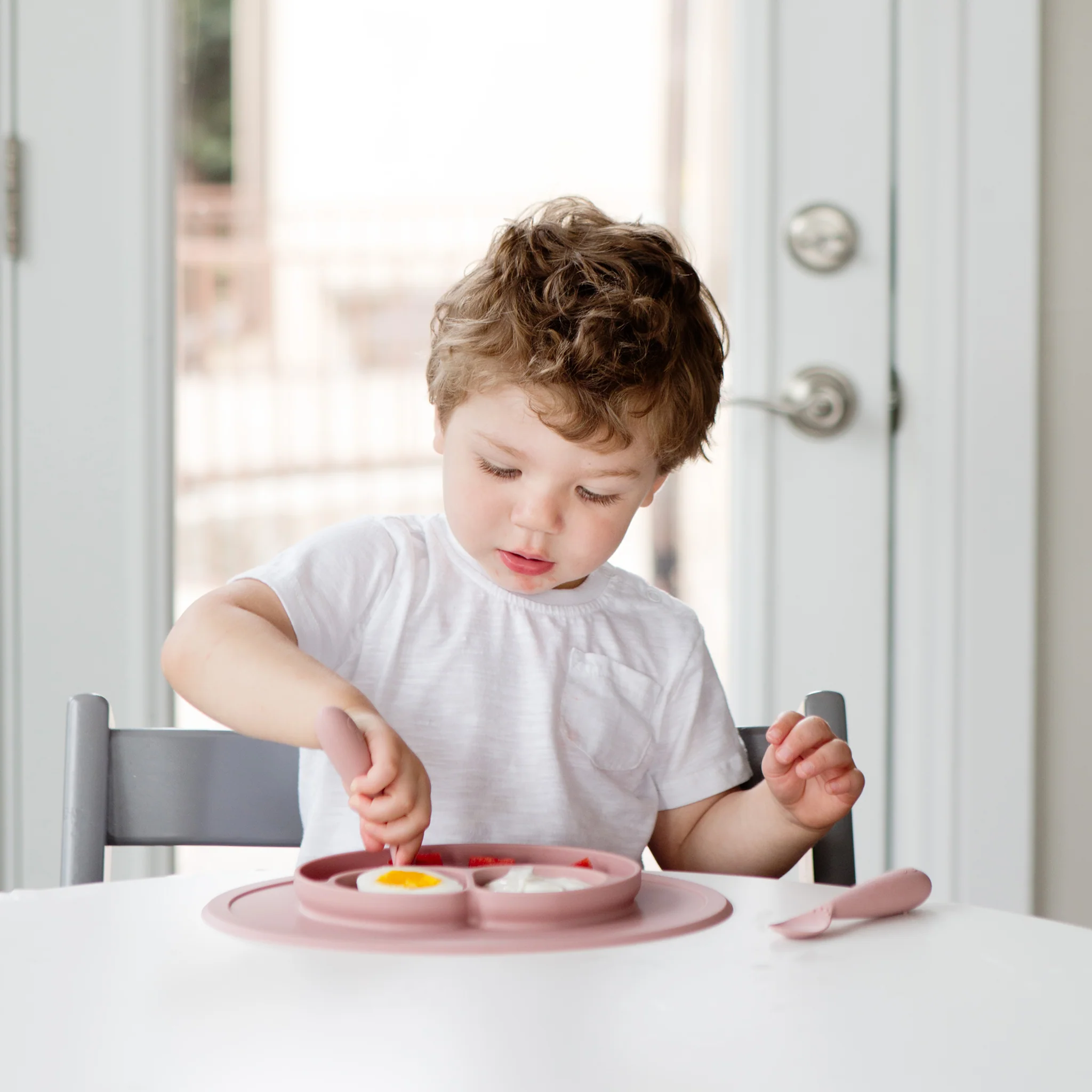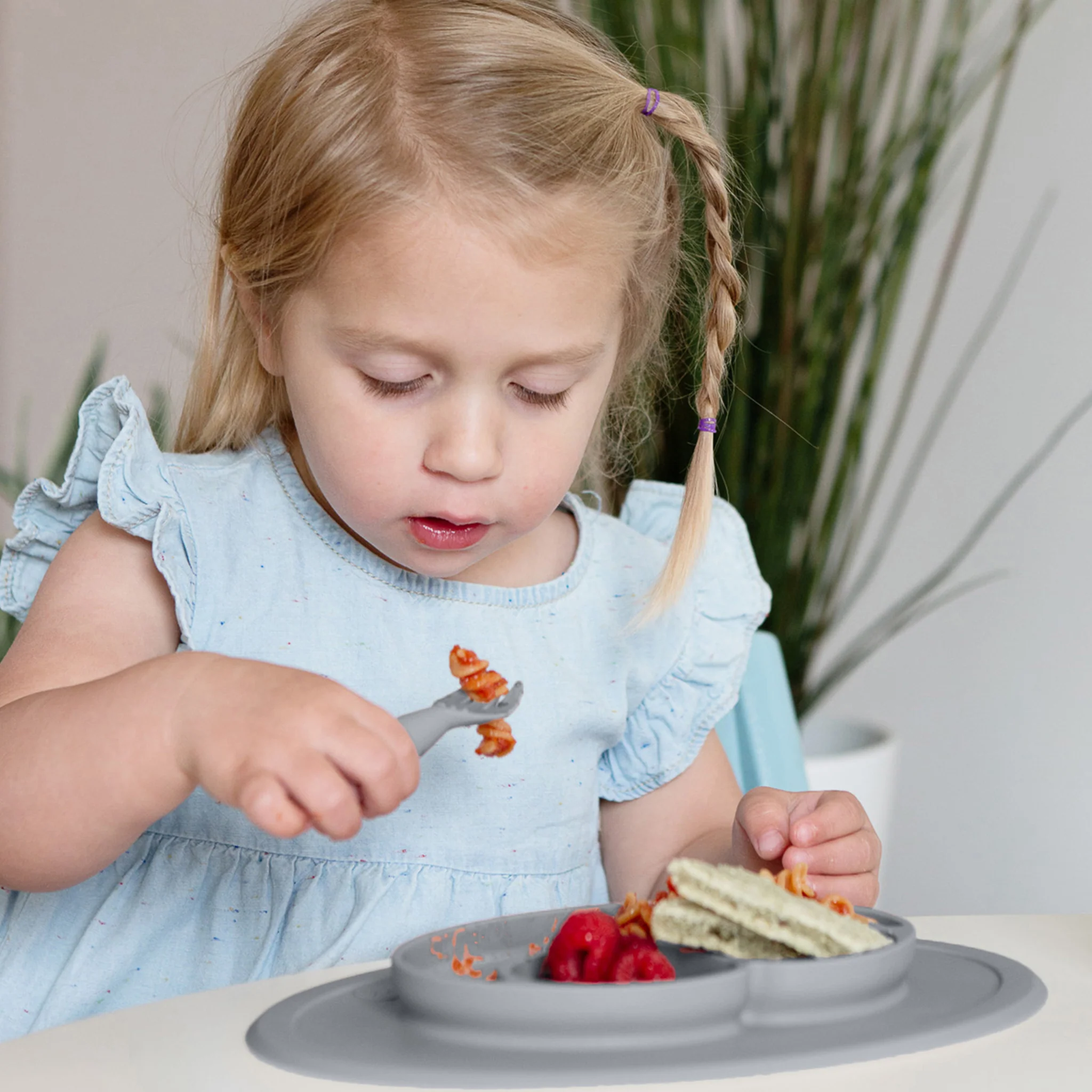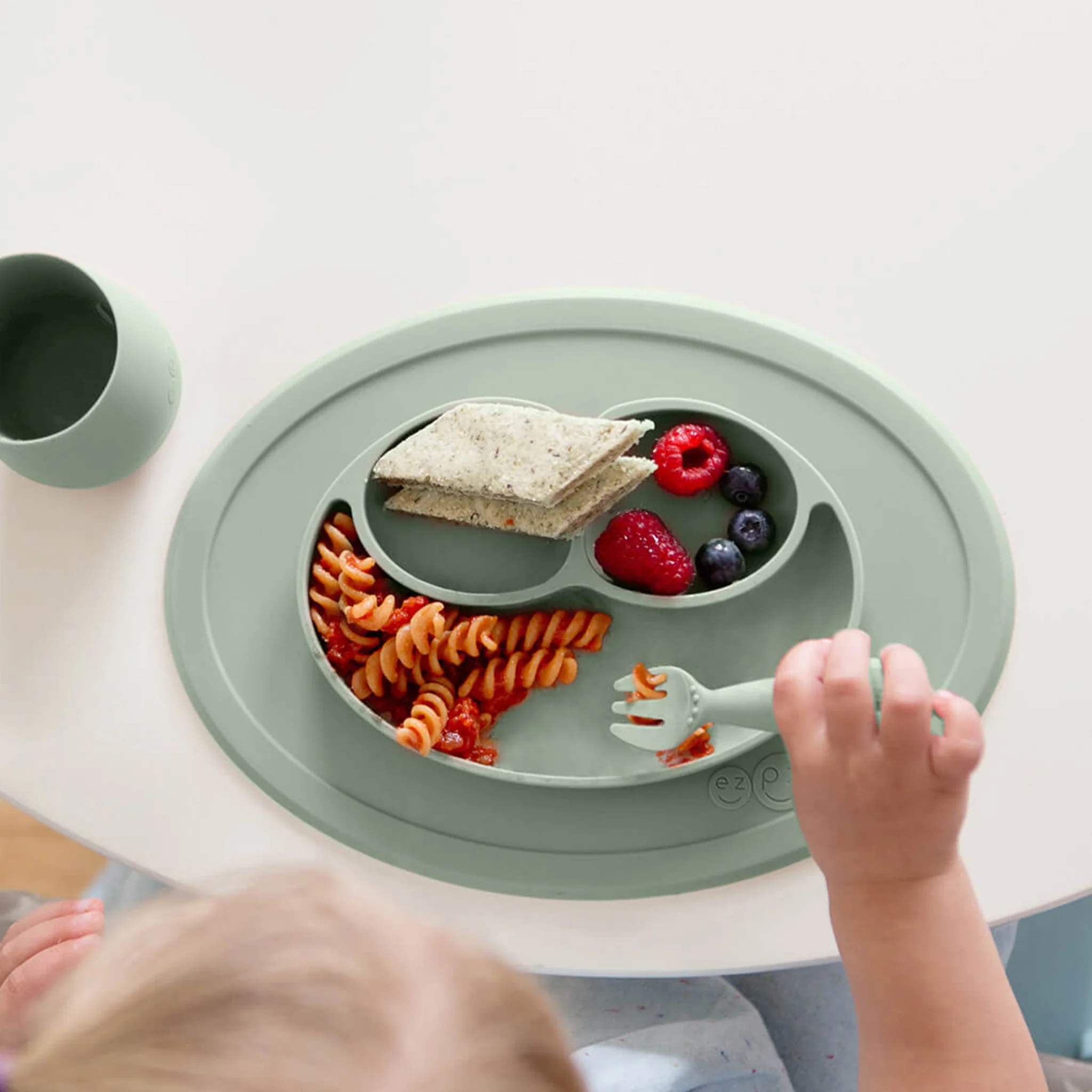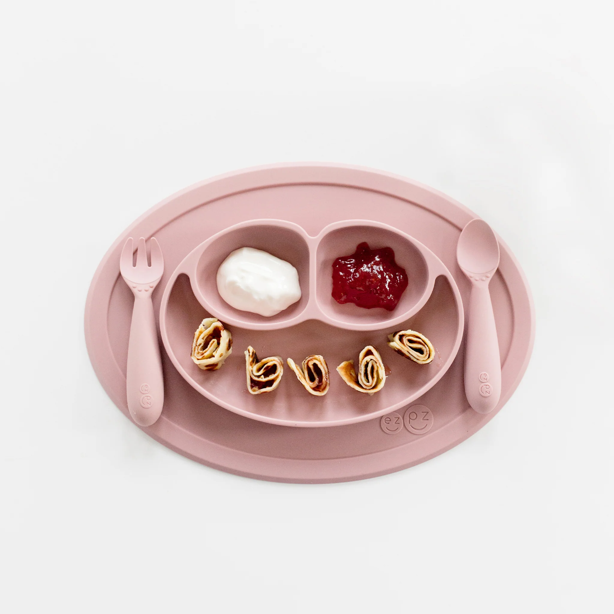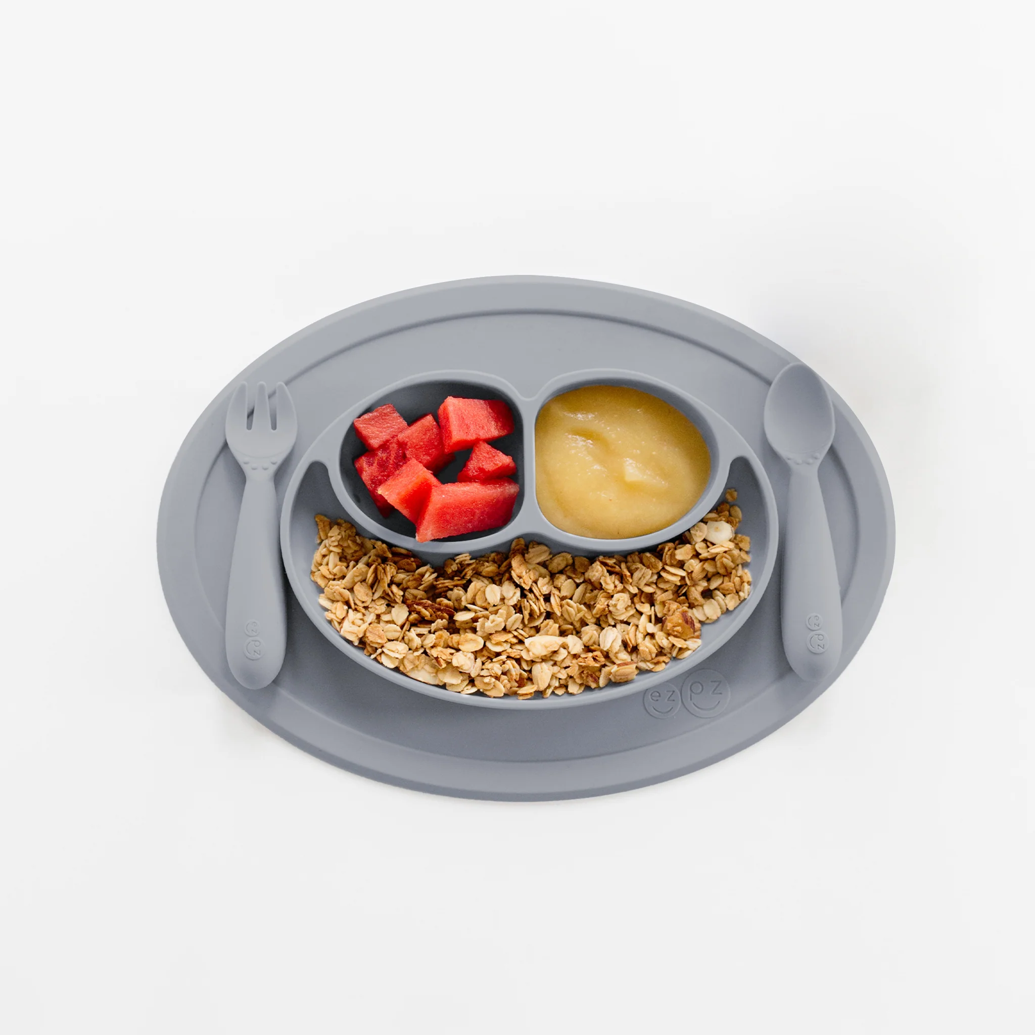 As infants transition to toddlerhood, they are learning to feed themselves, and the ezpz Mini Feeding Set provides the developmental tools you need to help your toddler meet mealtime milestones.