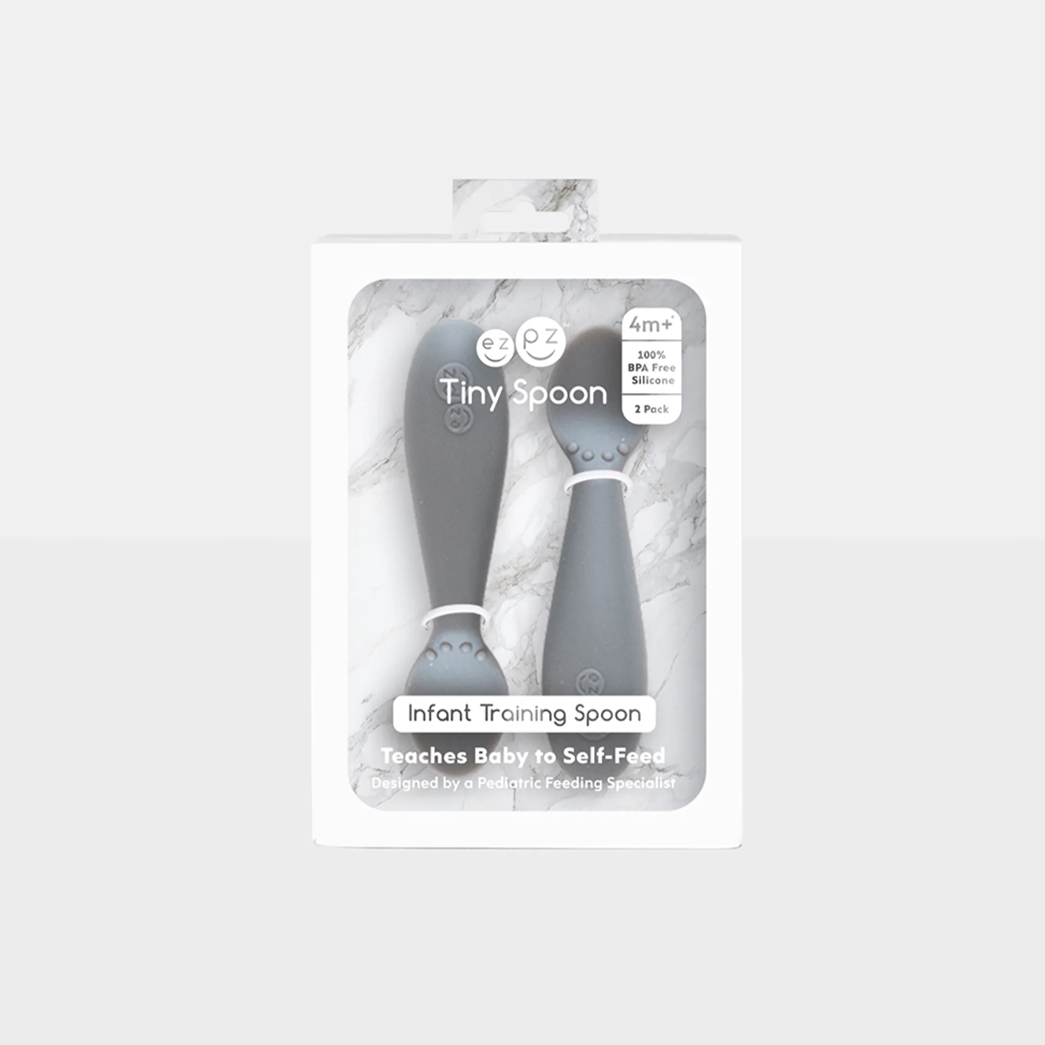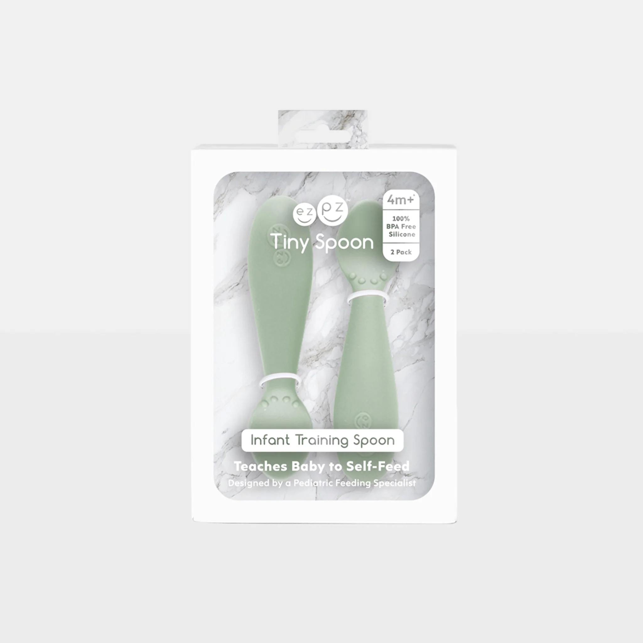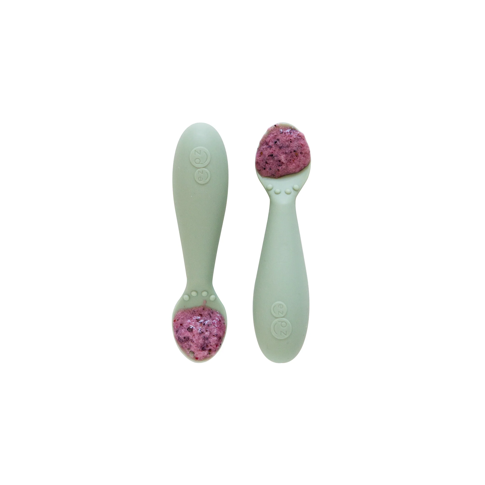The ezpz Infant Spoon promotes your baby's feeding independence by focusing on fine motor and feeding development while providing sensory awareness. Made of food-grade silicone, the spoon is designed to be easy for babies to grasp and use.