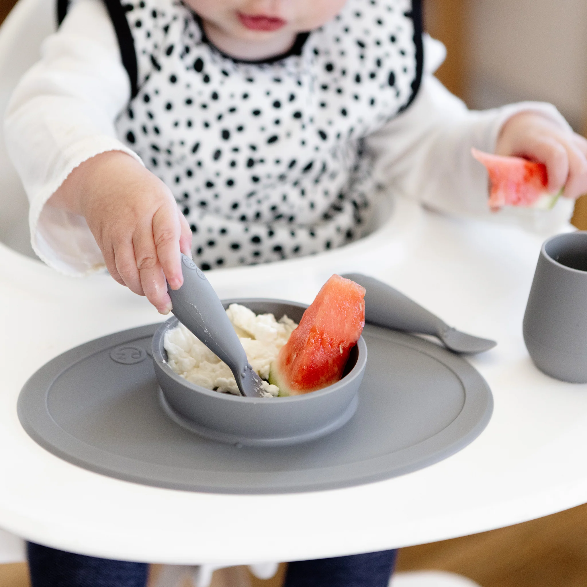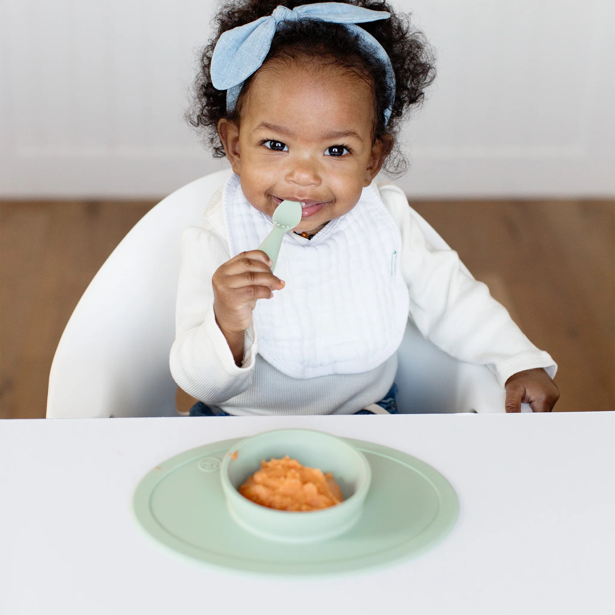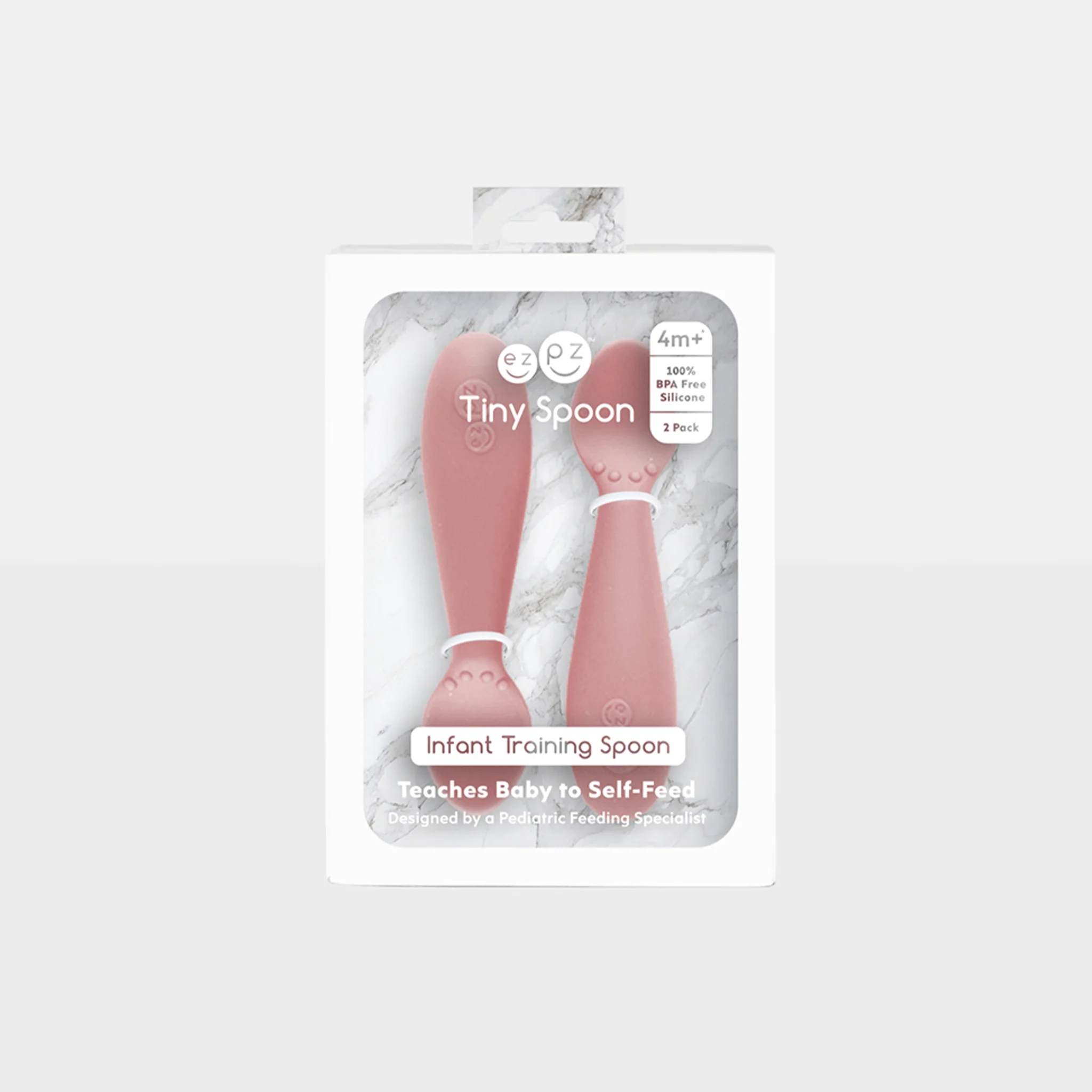 The ezpz Infant Spoon promotes your baby's feeding independence by focusing on fine motor and feeding development while providing sensory awareness. Made of food-grade silicone, the spoon is designed to be easy for babies to grasp and use.