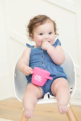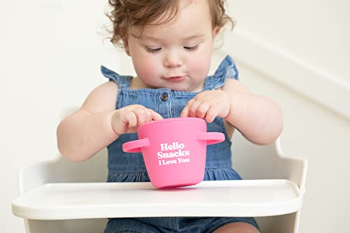 The Happy Snacker is the first two piece silicone snack cup! No more trails of crumbs to pick up thanks to our snap tight lid - go ahead and put the vacuum away. Designed with easy grip handles for little hands to independently self-feed. Hold the applause because there's more.. The horizontal handles allow the cup to securely fit in the car seat and stroller cup holders. The simple two-piece design makes pouring in snacks a breeze! The mess proof, tight lid stays in place. The soft silicone opening allows little hands to easily access food and prevents spills. Just pop the lid off when you are ready to clean it, each piece is dishwasher safe. Happy snacking!