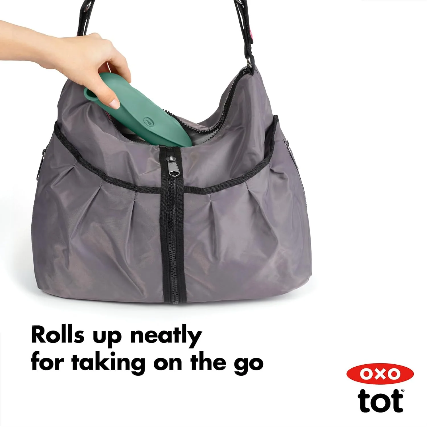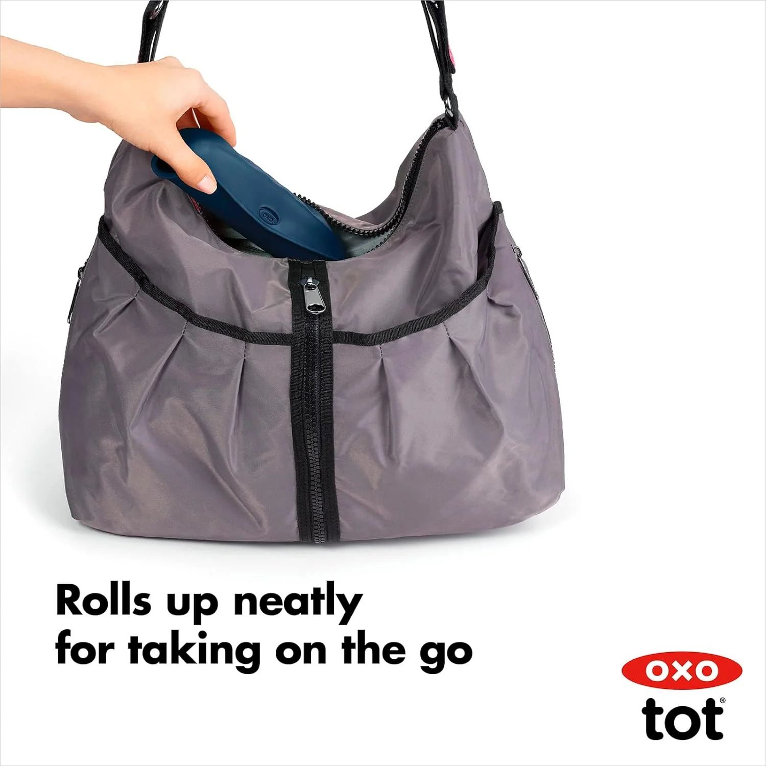 - Wide, soft, food-safe silicone pocket effectively catches crumbs