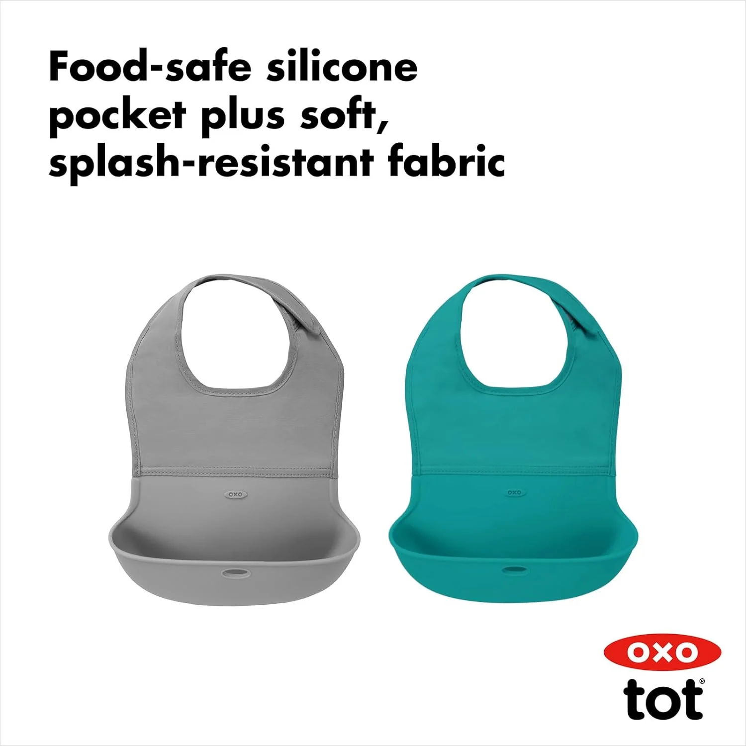 - Convenient, easy-to-clean Bib combines comfortable fabric with durable silicone