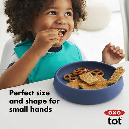 The OXO Tot Dinner Plate will give your little one their very own durable dinnerware for eating food at the table. Silicone design has a weighted base and high side walls to help limit messes. A must-have for toddlers who want to eat independently.