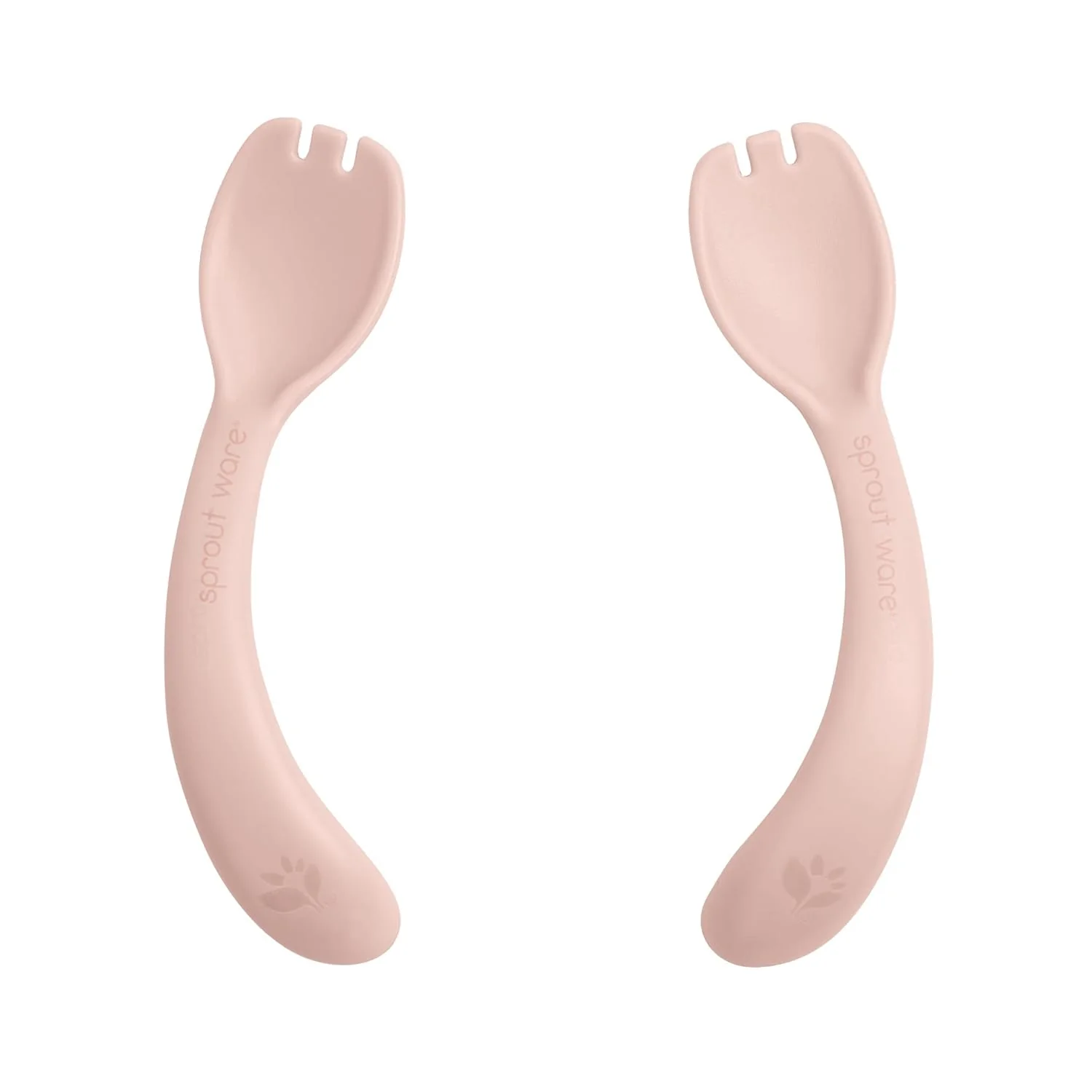 Help your little one explore handedness at mealtime with our green sprouts® Sprout Ware® Handy Sporks. These baby sporks have curved, ergonomic handles that offer support and comfort while helping baby to discover hand preference. Our innovative Sprout Ware® plant-plastic is a non-toxic, lightweight, durable, and recyclable material made without PVC and hormone disrupters like BPA for baby’s health and safety. Safer materials reduce the risk of chemical leaching—with our baby food sporks, food touches only Sprout Ware® plant-plastic. Our spork set includes two combination spoon and rounded forks for little ones to safely practice scooping & piercing foods. Use our plant-plastic sporks to explore hand preference for babies 9 months and up. Dishwasher safe for easy cleaning.