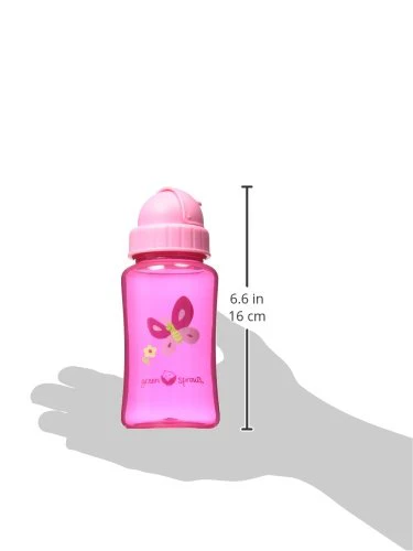 The Straw Bottle and its soft, silicone sipper straw encourages healthy oral development once baby grows out of sippy cups. It is lightweight and easy for baby to hold independently. The locking cap flips down to prevent leaks and spills!