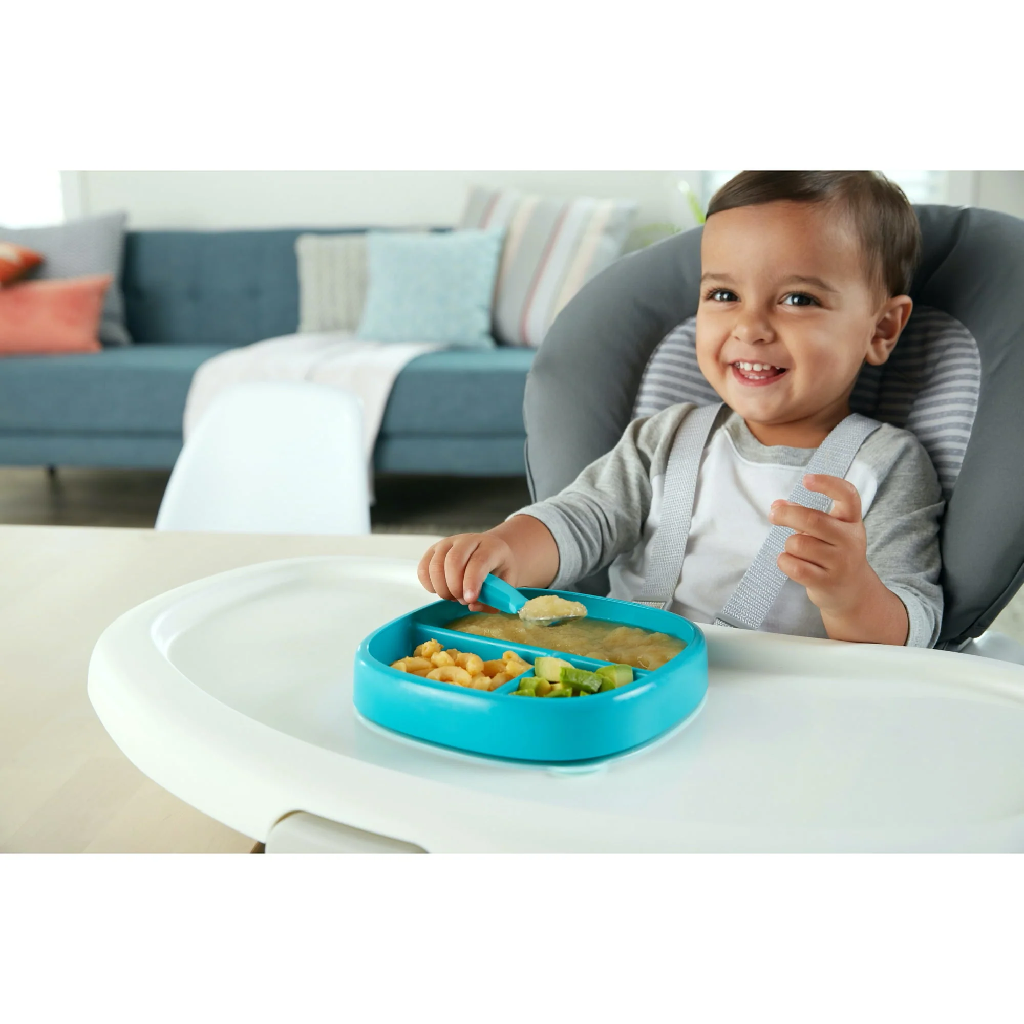 BEABA Silicone Divided Plate with Self-Feeding Silicone Spoon