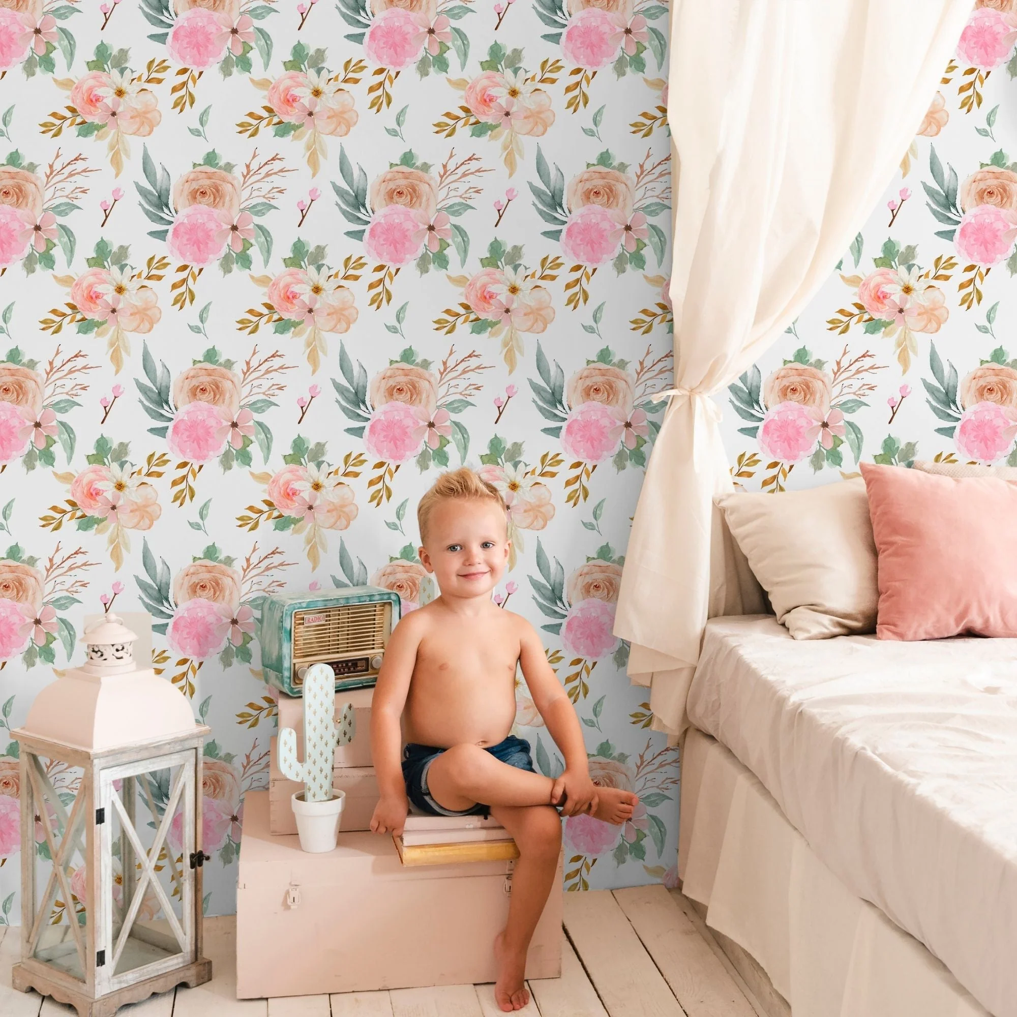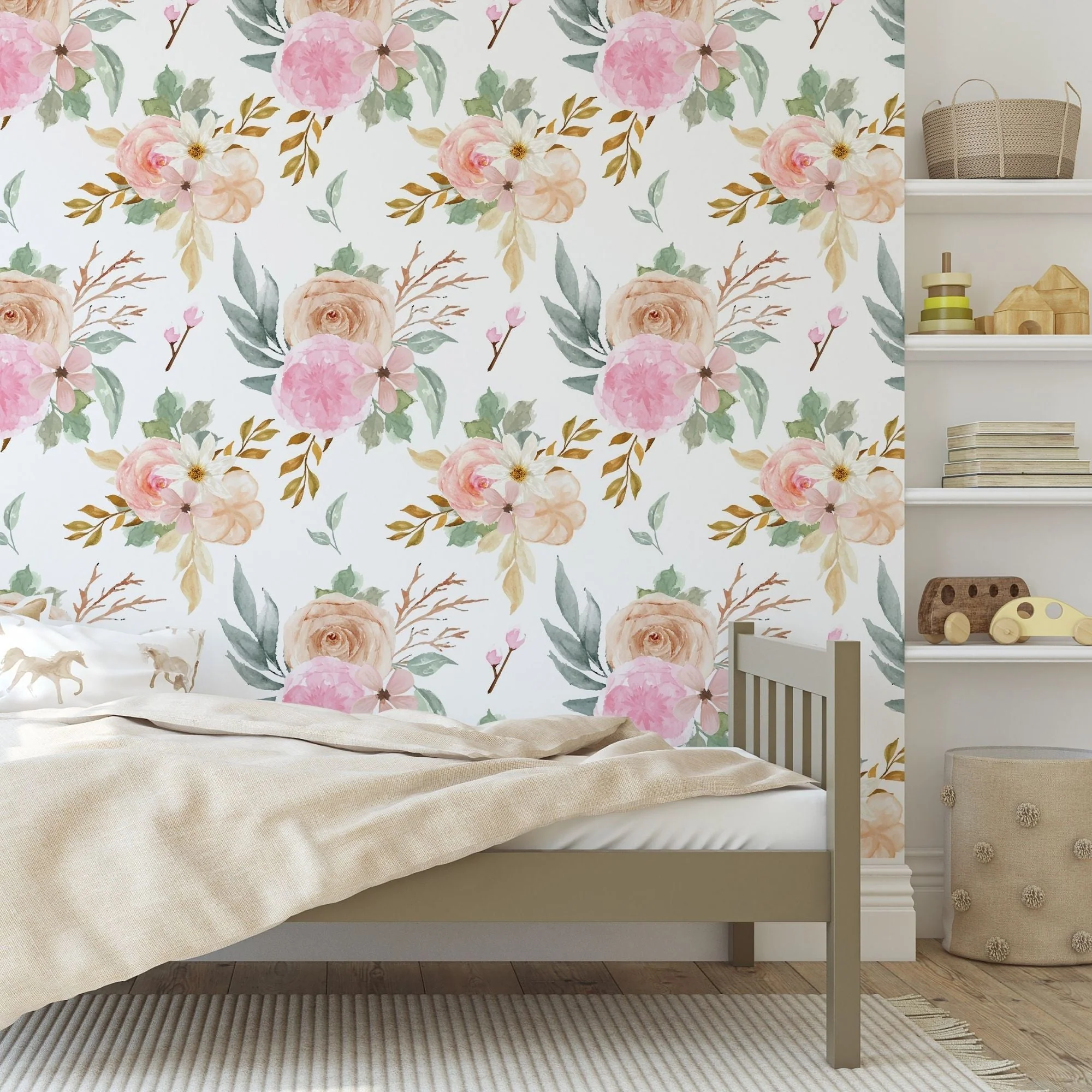 TeepeeJoy Flower Wallpaper for Nursery and Kids Rooms - Vintage Blossom Symphony
