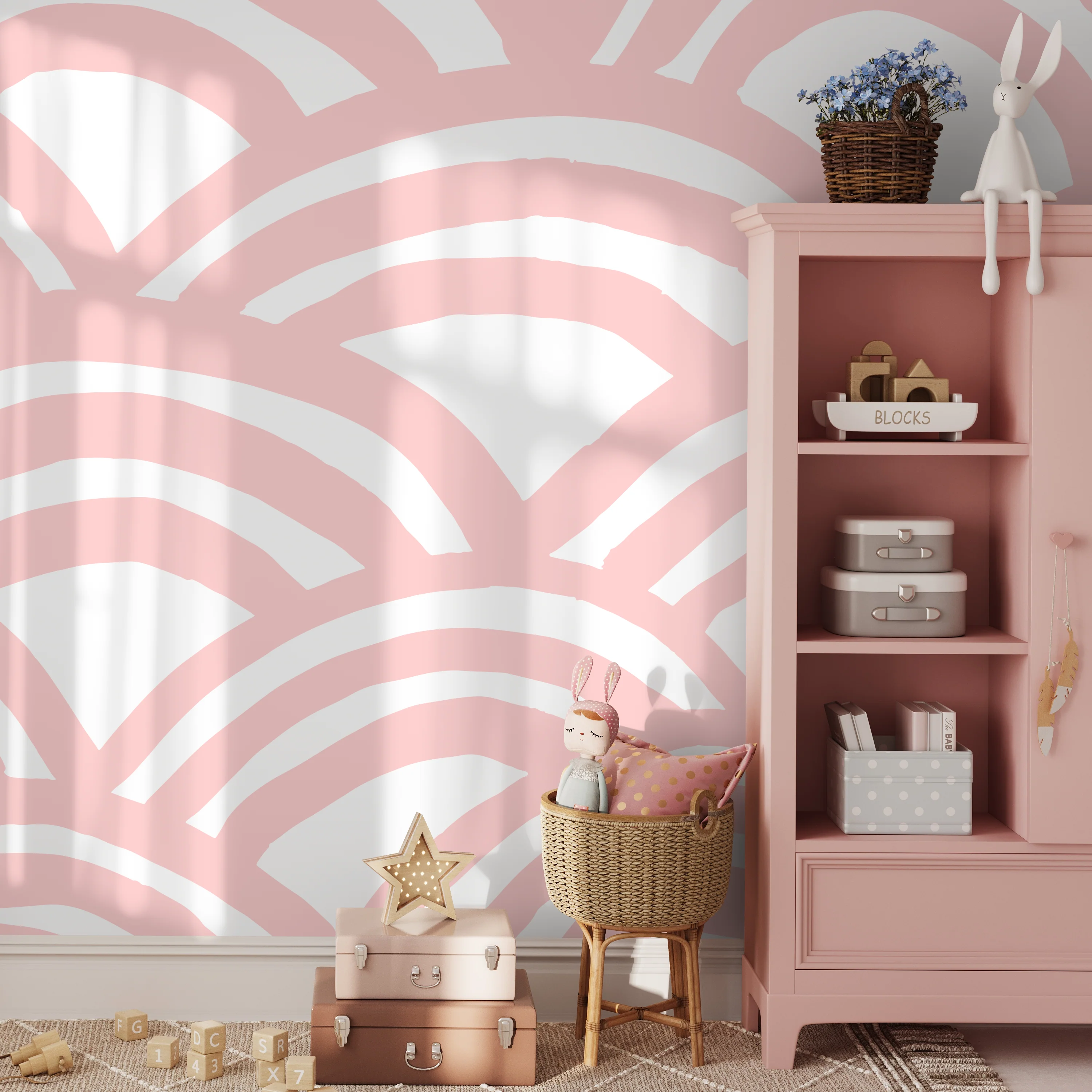 Ondecor Pink Abstract Kids Peel and Stick Removable Wallpaper - A568