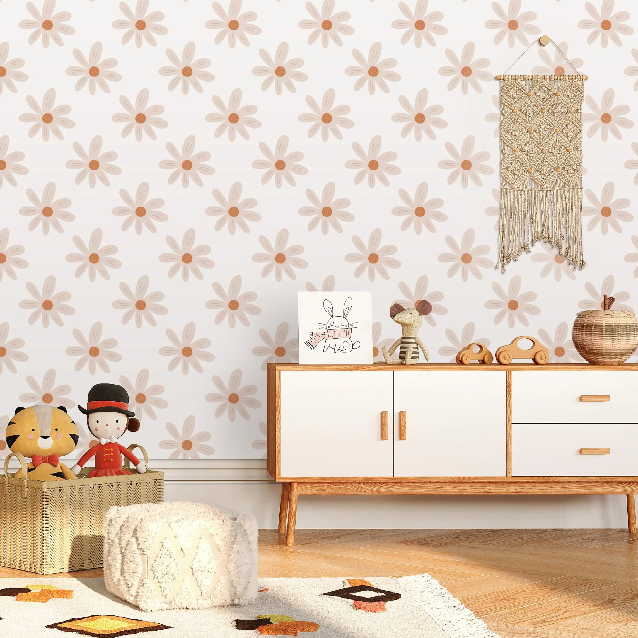 TeepeeJoy Daisy Wallpaper for Nursery and Kids Rooms - Peachy Daisies
