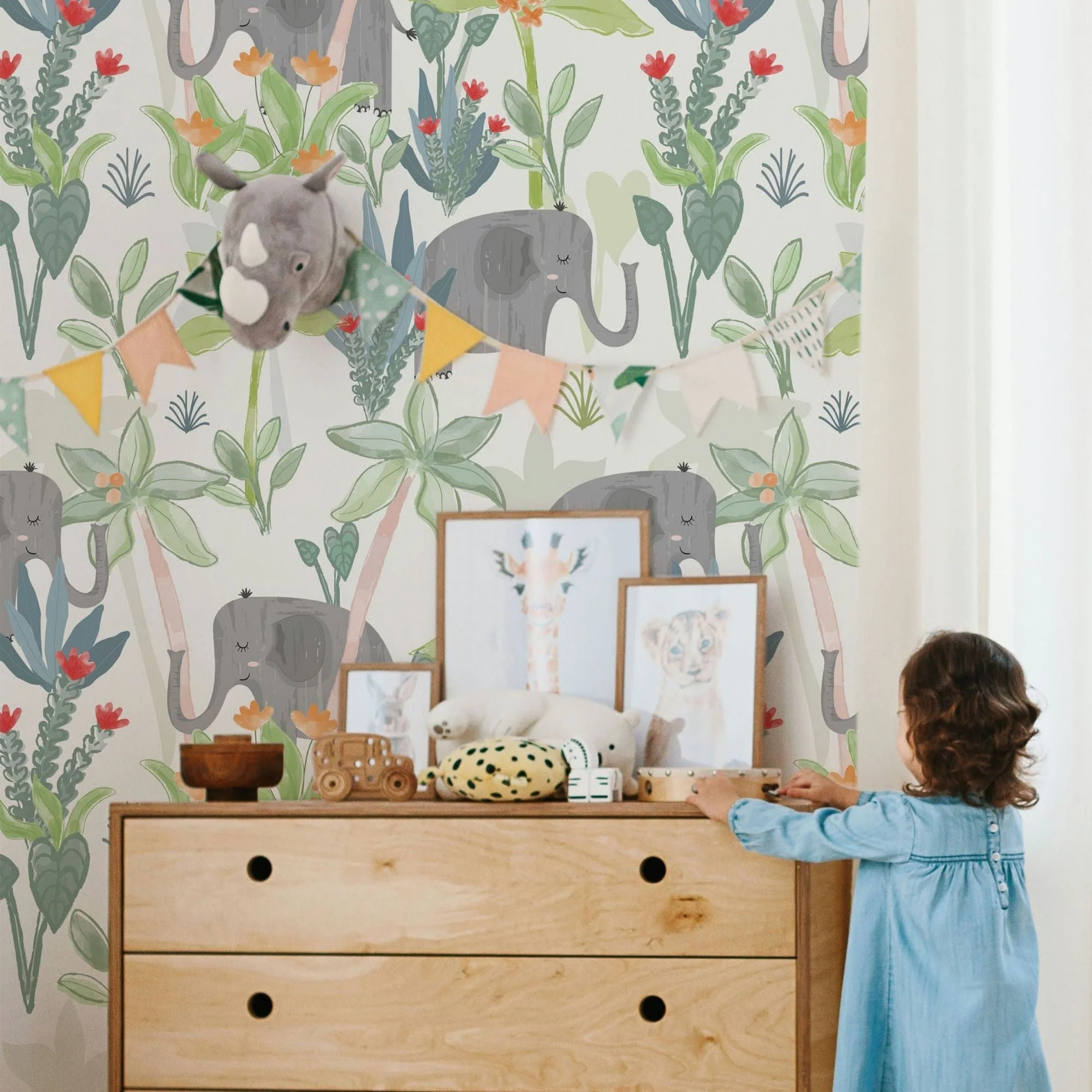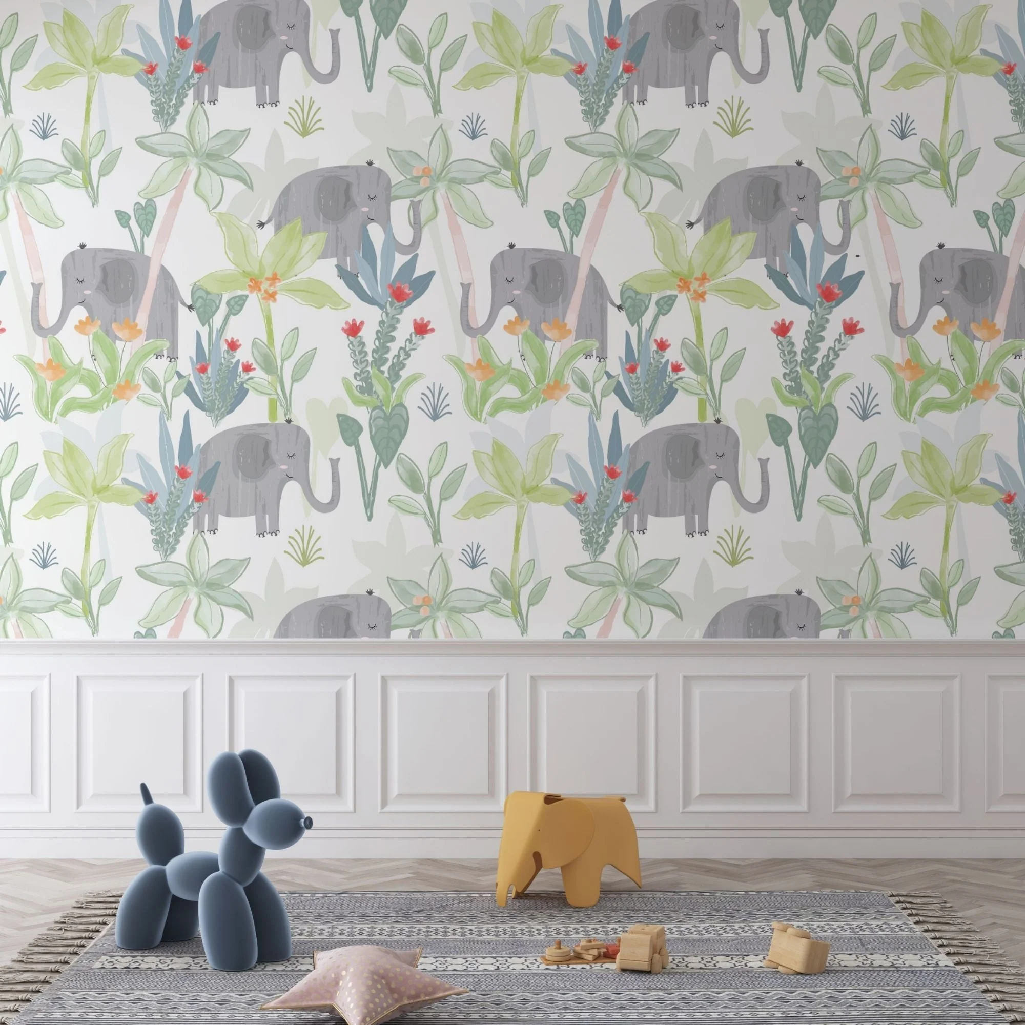TeepeeJoy Elephant Peel and Stick or Traditional Wallpaper - Elephant Eden