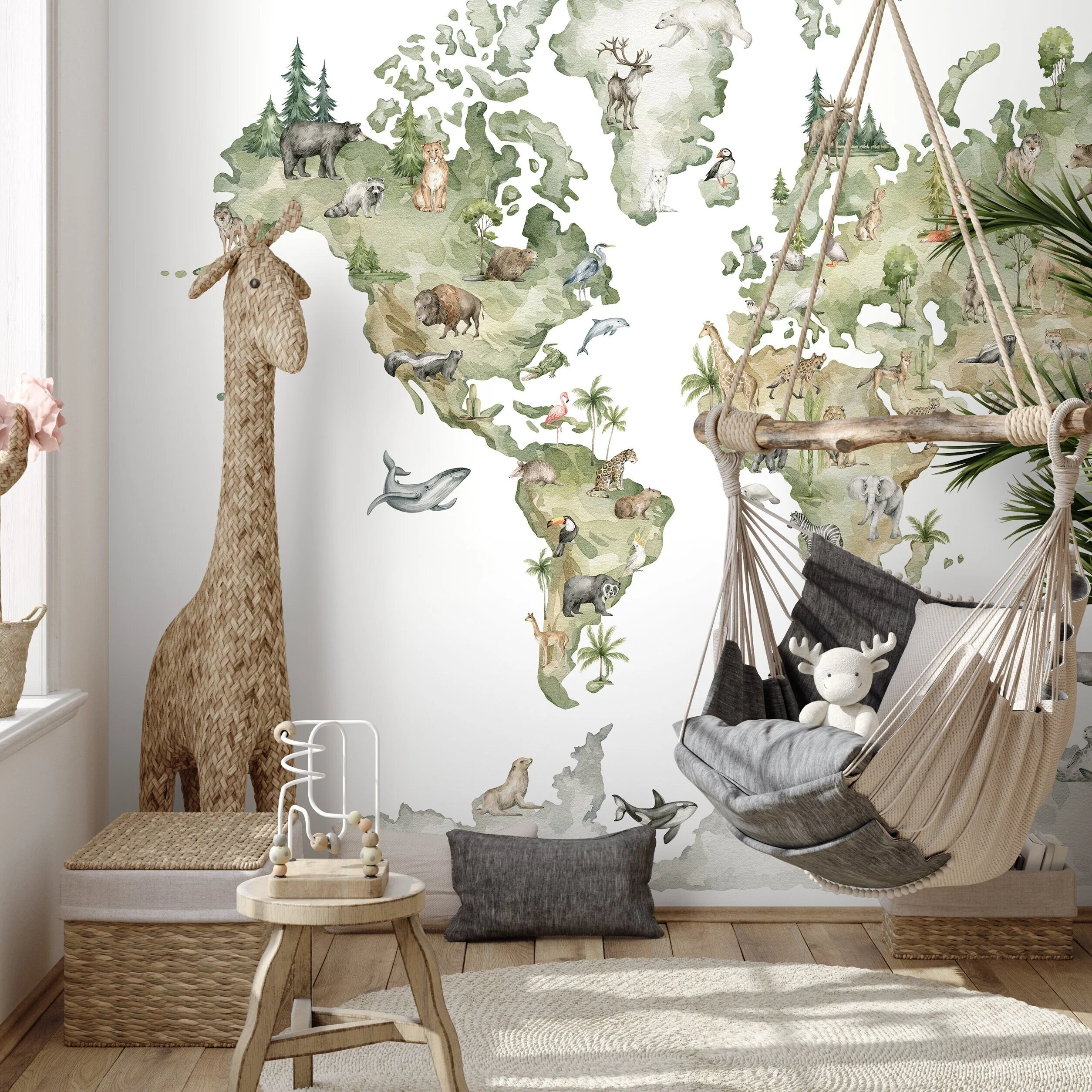 Ondecor Neutral Nursery Animals Peel and Stick Removable Wallpaper Room Decor - D113