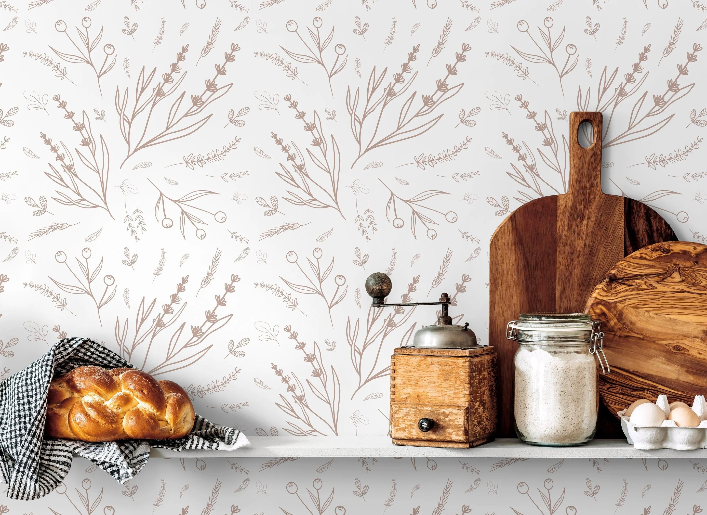 Ondecor Neutral Minimalist Wildflower Peel and Stick Removable Wallpaper Room Decor - D402