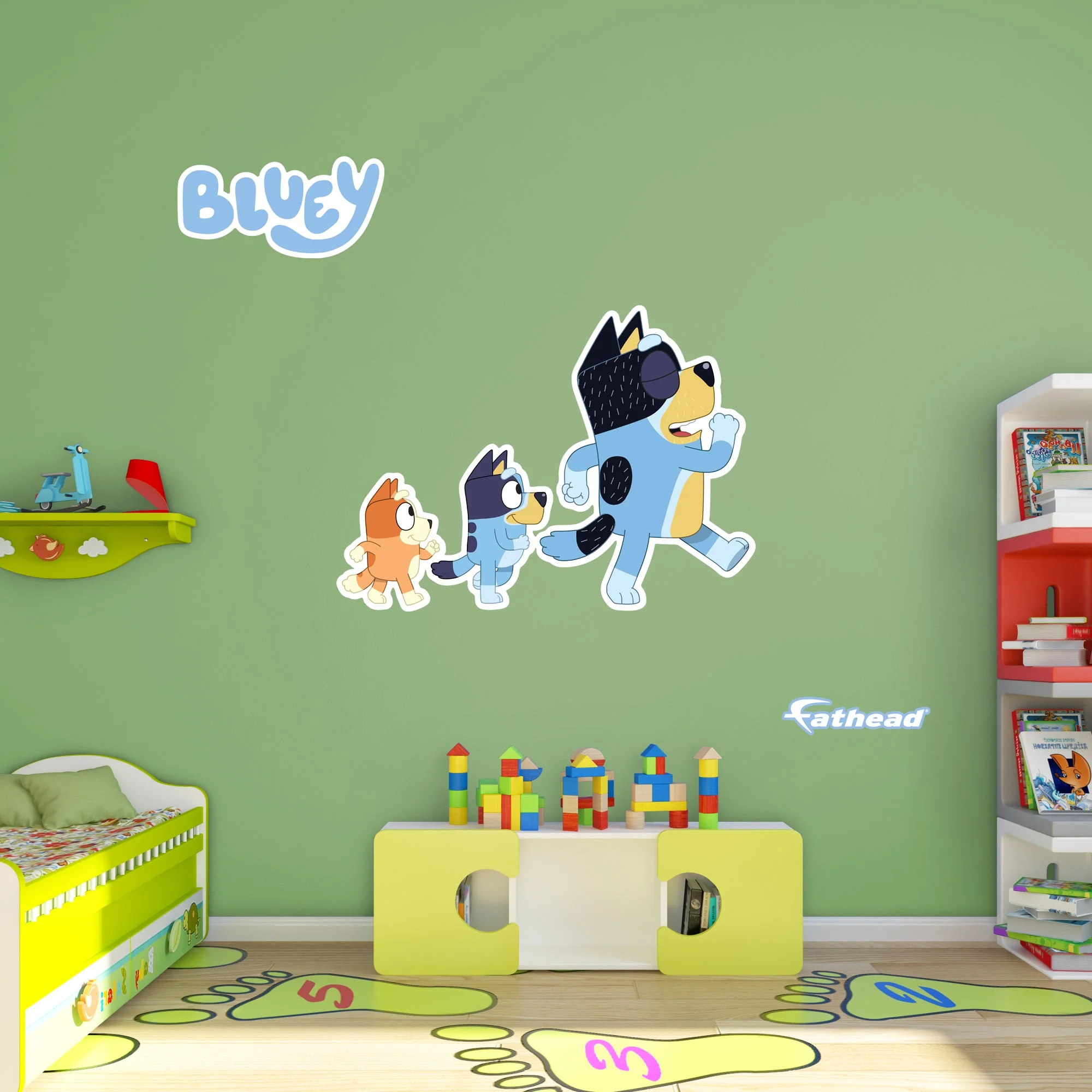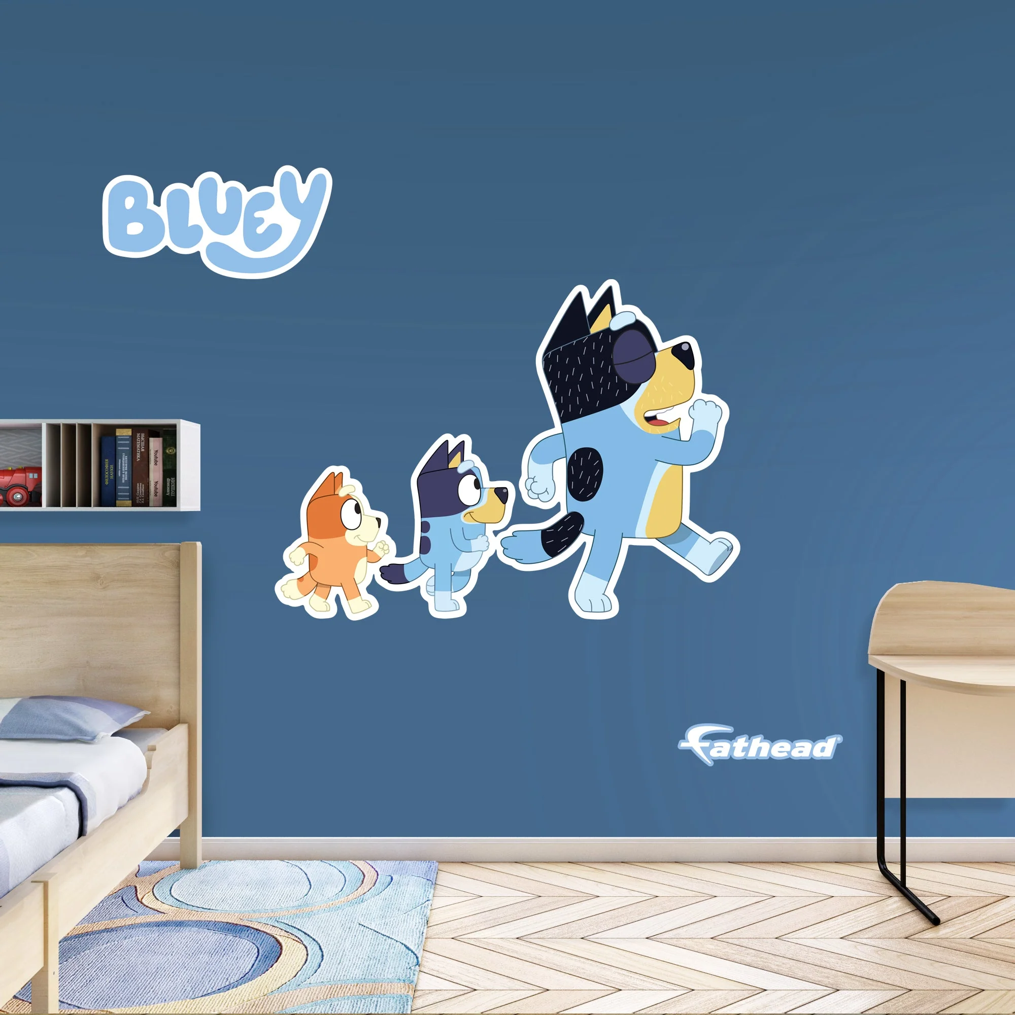 Fathead Bluey: Bandit, Bluey, Bingo Marching Icon - Officially Licensed BBC Removable Adhesive Decal