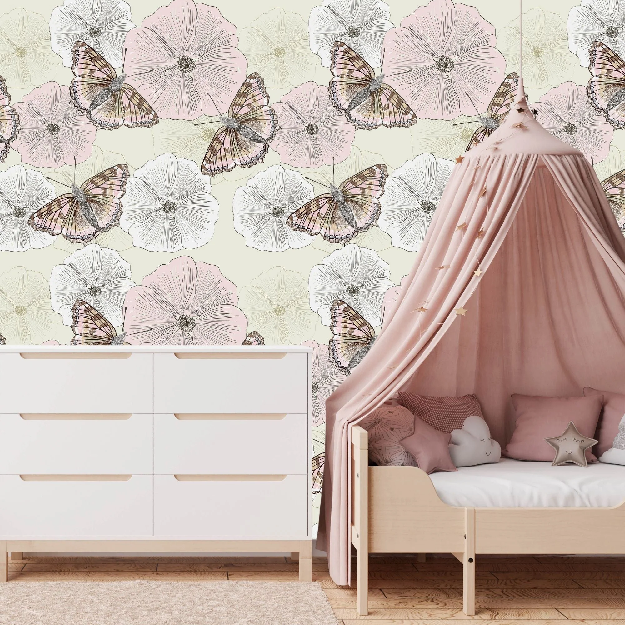 TeepeeJoy Butterfly Theme Nursery Wallpaper - Butterfly Blossom Waltz