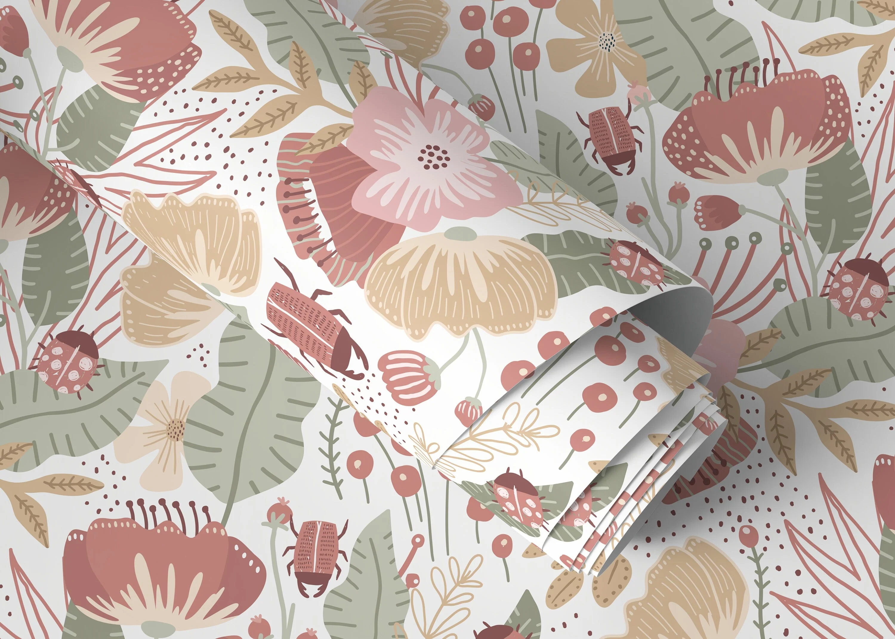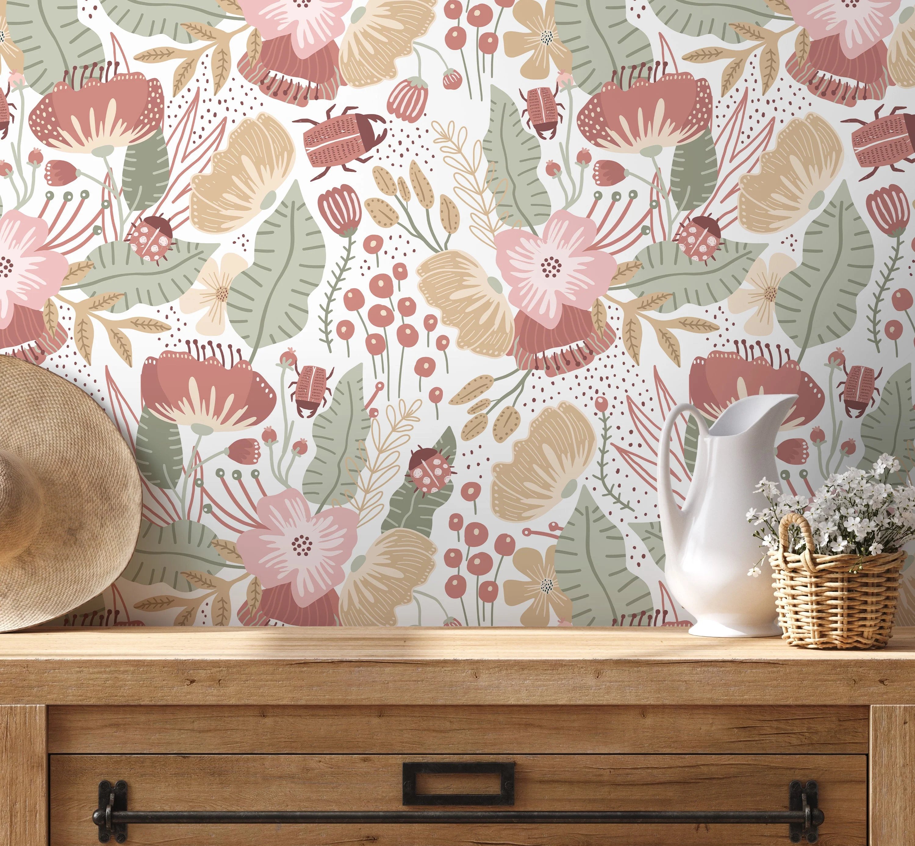 Ondecor Boho Floral Garden Peel and Stick Removable Wallpaper Room Decor - D312