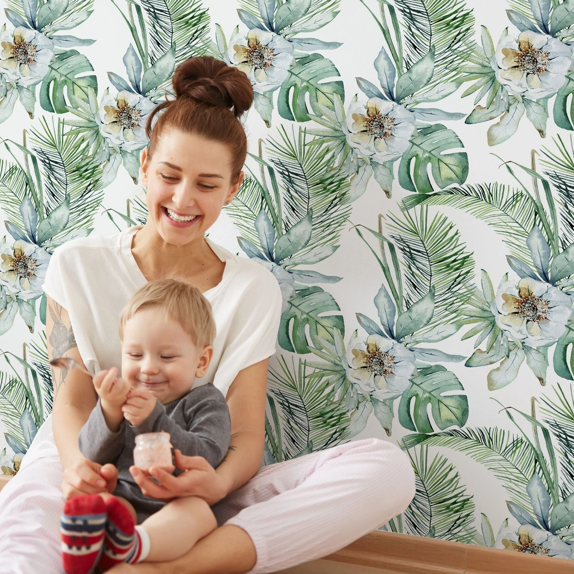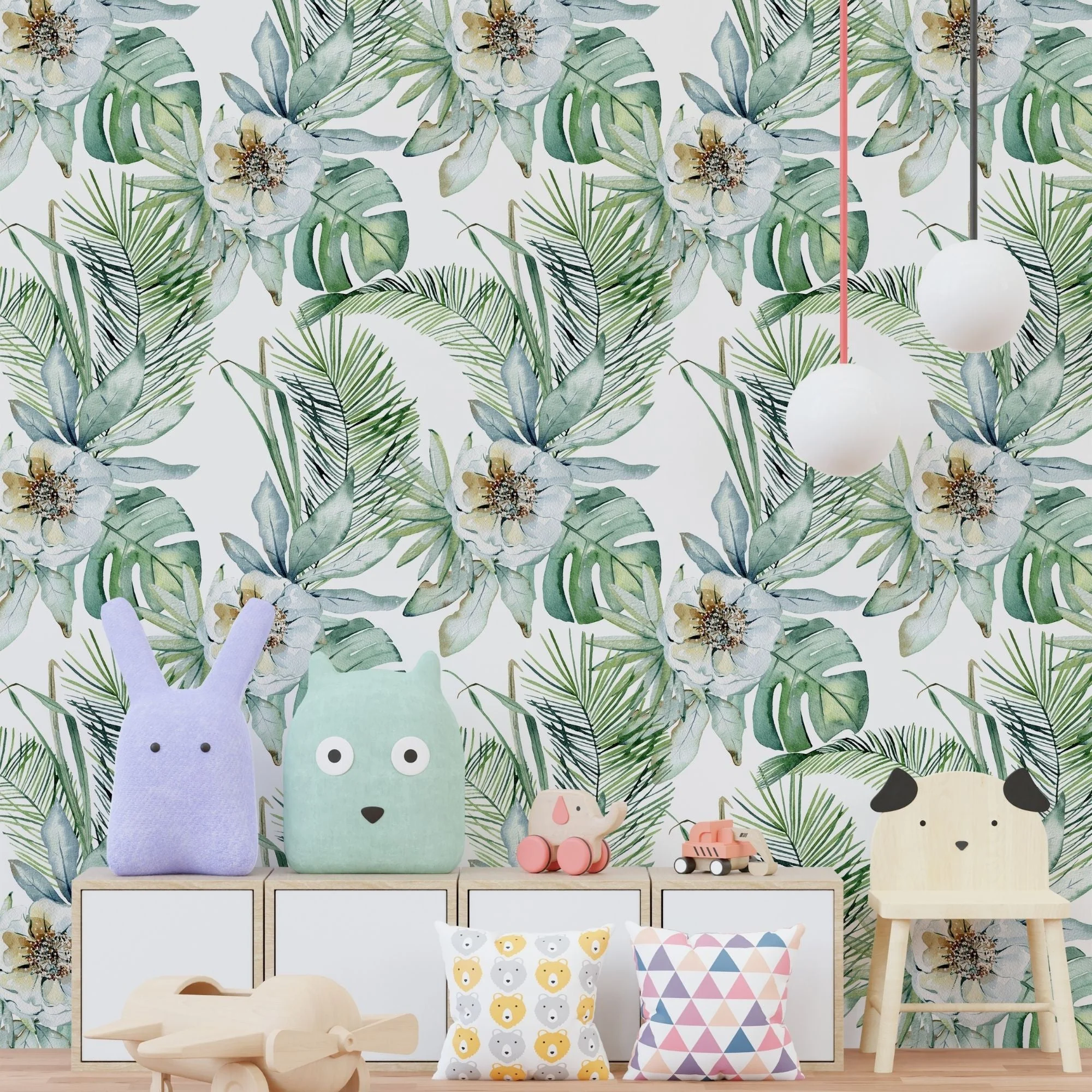 TeepeeJoy Flower Wallpaper for Nursery and Kids Rooms - Emerald Eden