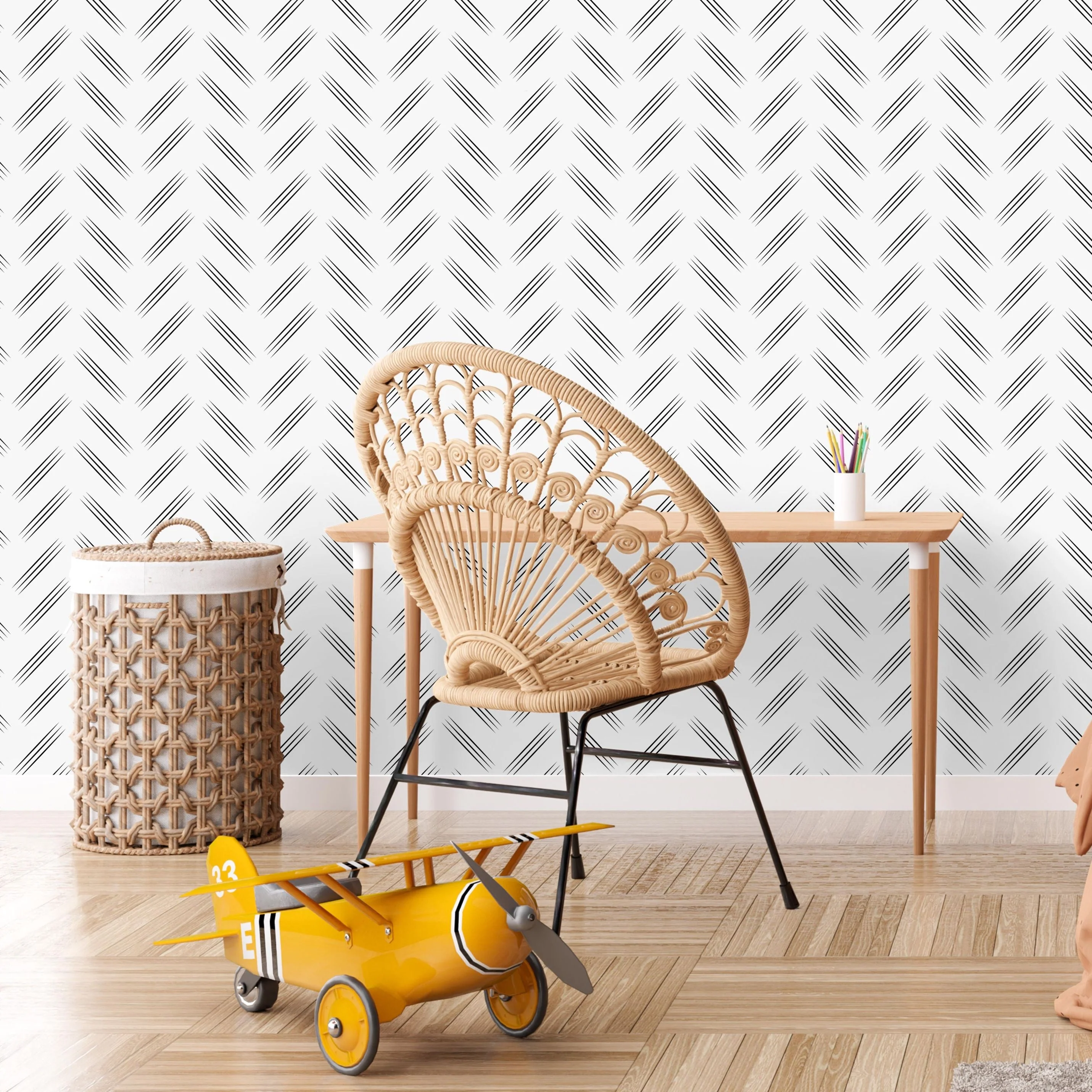 TeepeeJoy Boho Wallpaper for Nursery and Kids Rooms - Herringbone Strikes