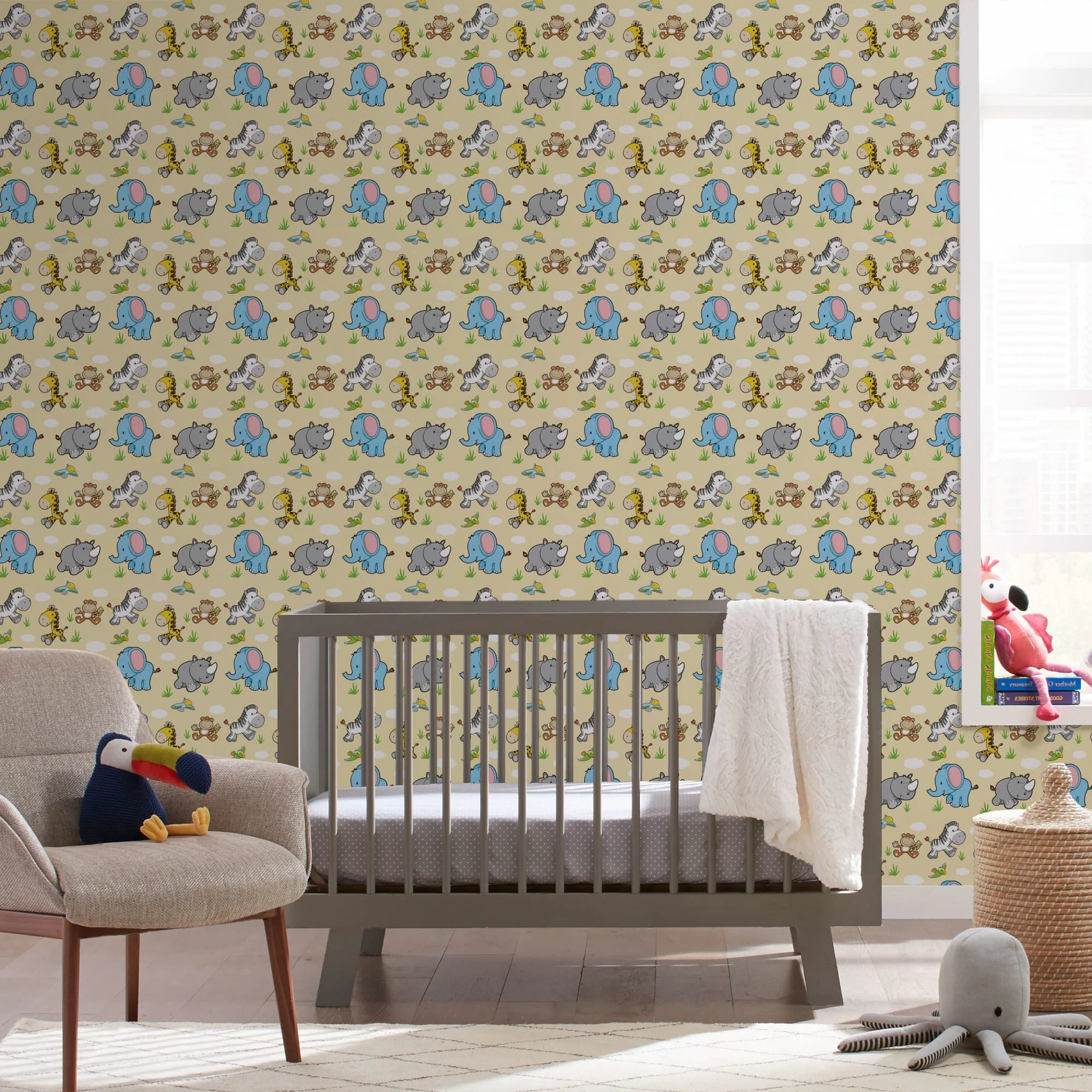 TeepeeJoy Animal Theme Nursery Wallpaper - Zoo Day Doodles