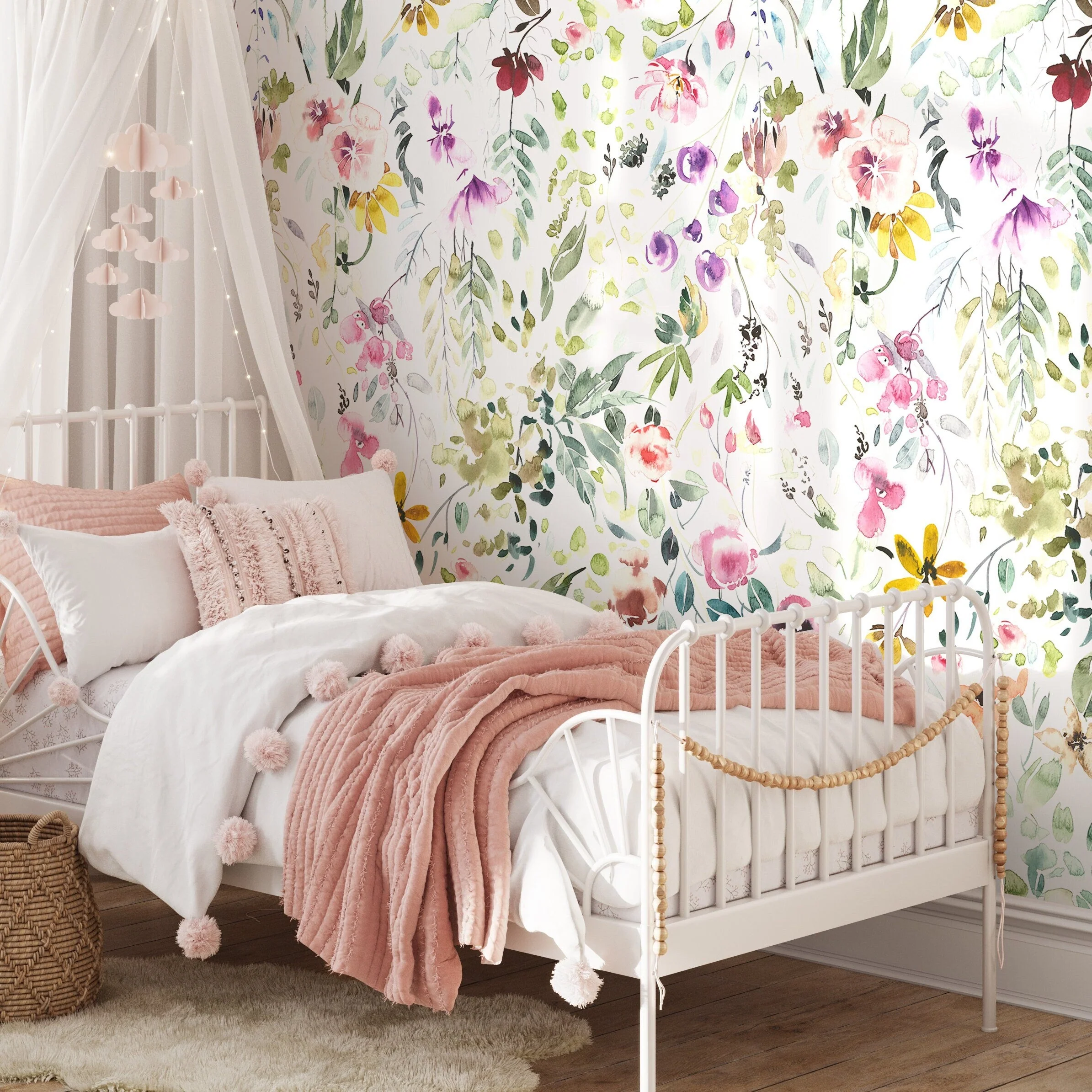 TeepeeJoy Flower Peel and Stick Wallpaper or Traditional Wallpaper - Ethereal Petal Cascade