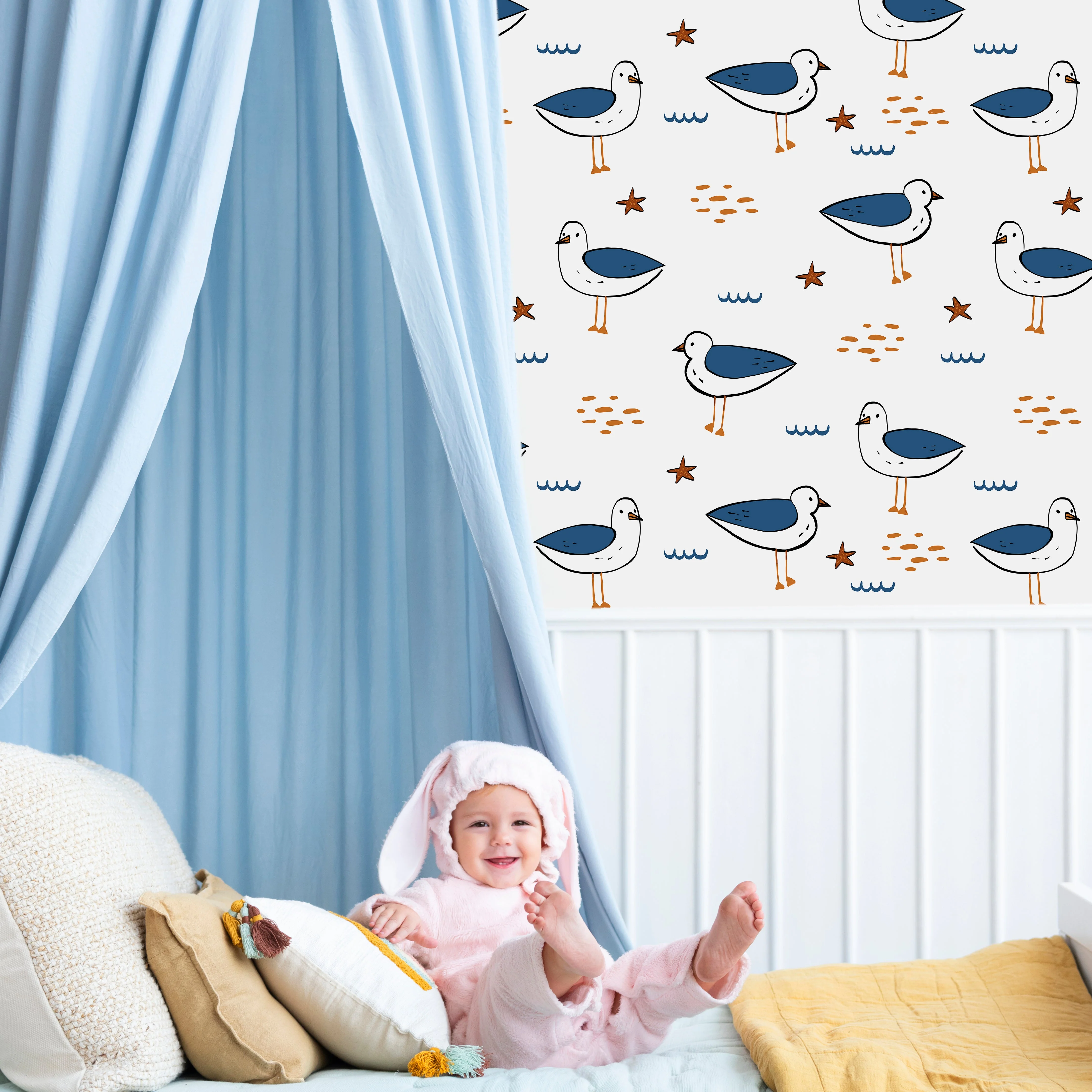 TeepeeJoy Birds Wallpaper Peel and Stick or Traditional - Coastal Chirps