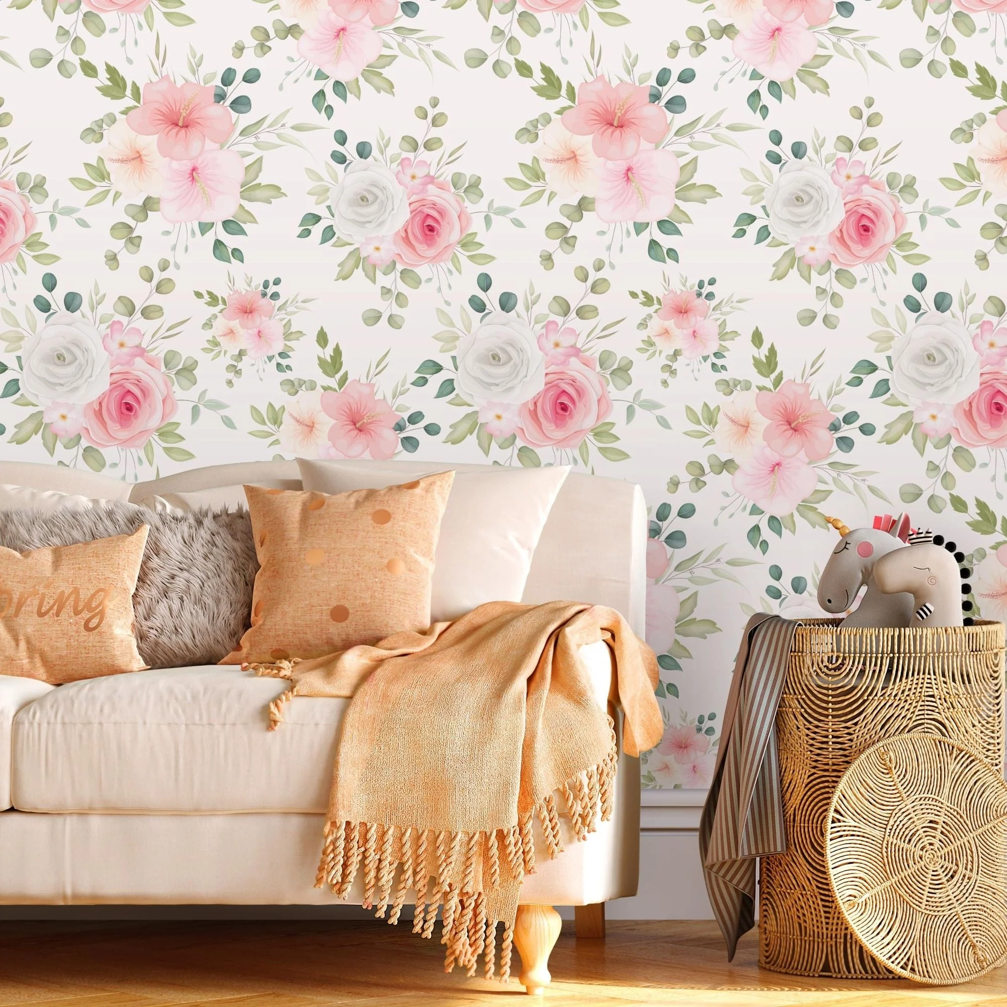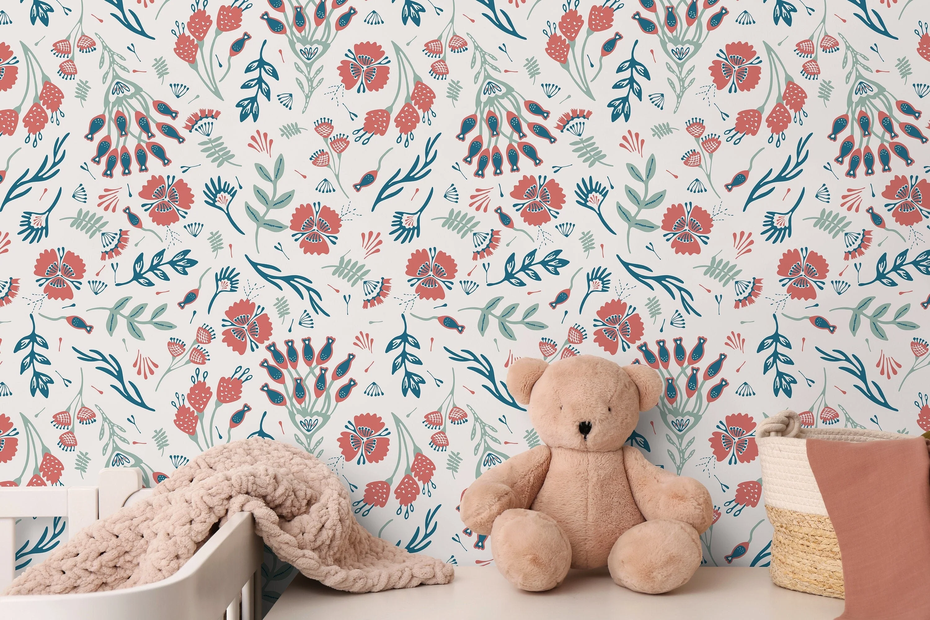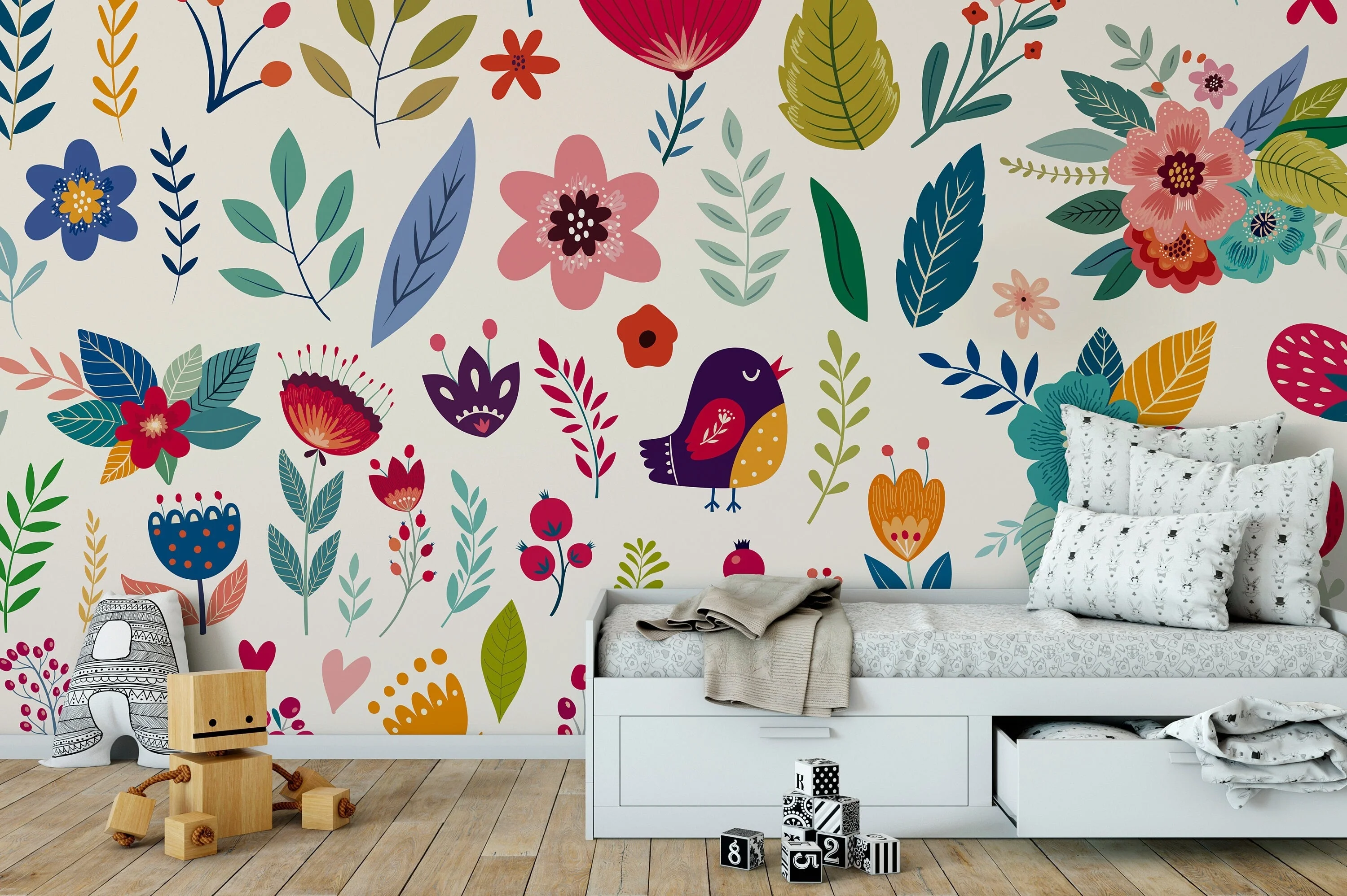 Ondecor Floral Watercolor Nursery Flowers Peel and Stick Wallpaper Home Decor - A264