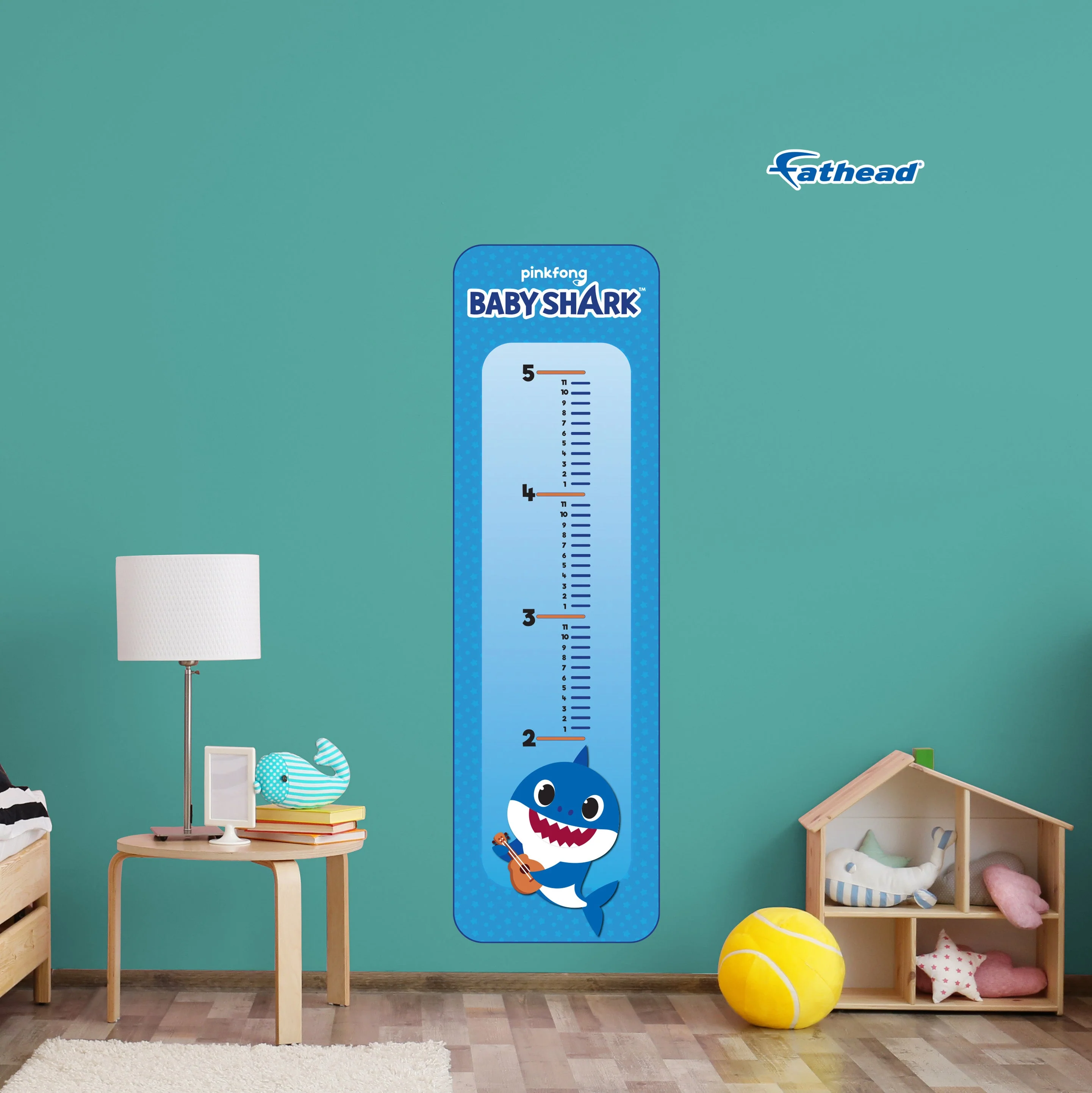 Fathead Baby Shark: Guitar Playing Growth Chart - Officially Licensed Nickelodeon Removable Adhesive Decal