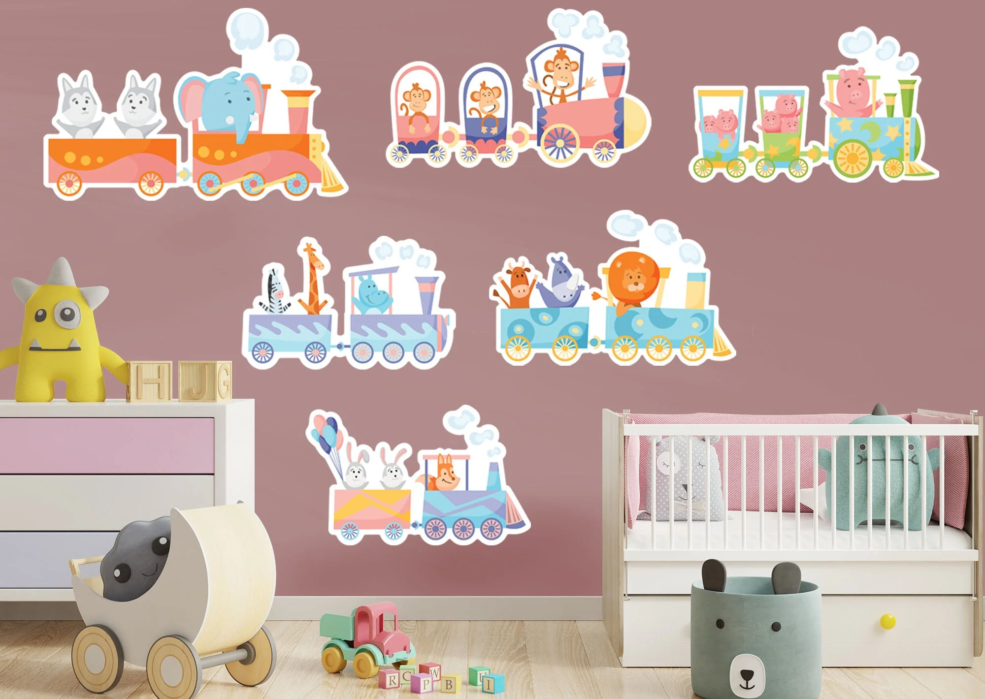 Fathead Nursery: Trains Pastel Collection - Removable Wall Adhesive Decal