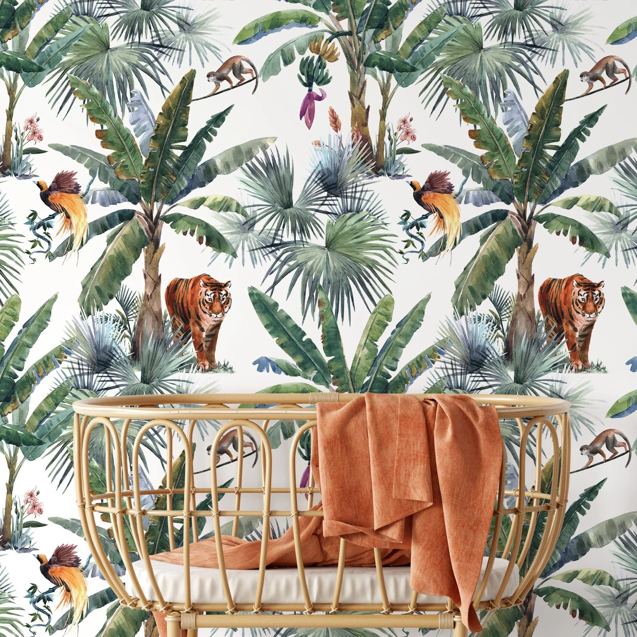Ondecor Tropical Jungle Botanical Peel and Stick and Traditional Wallpaper - D645
