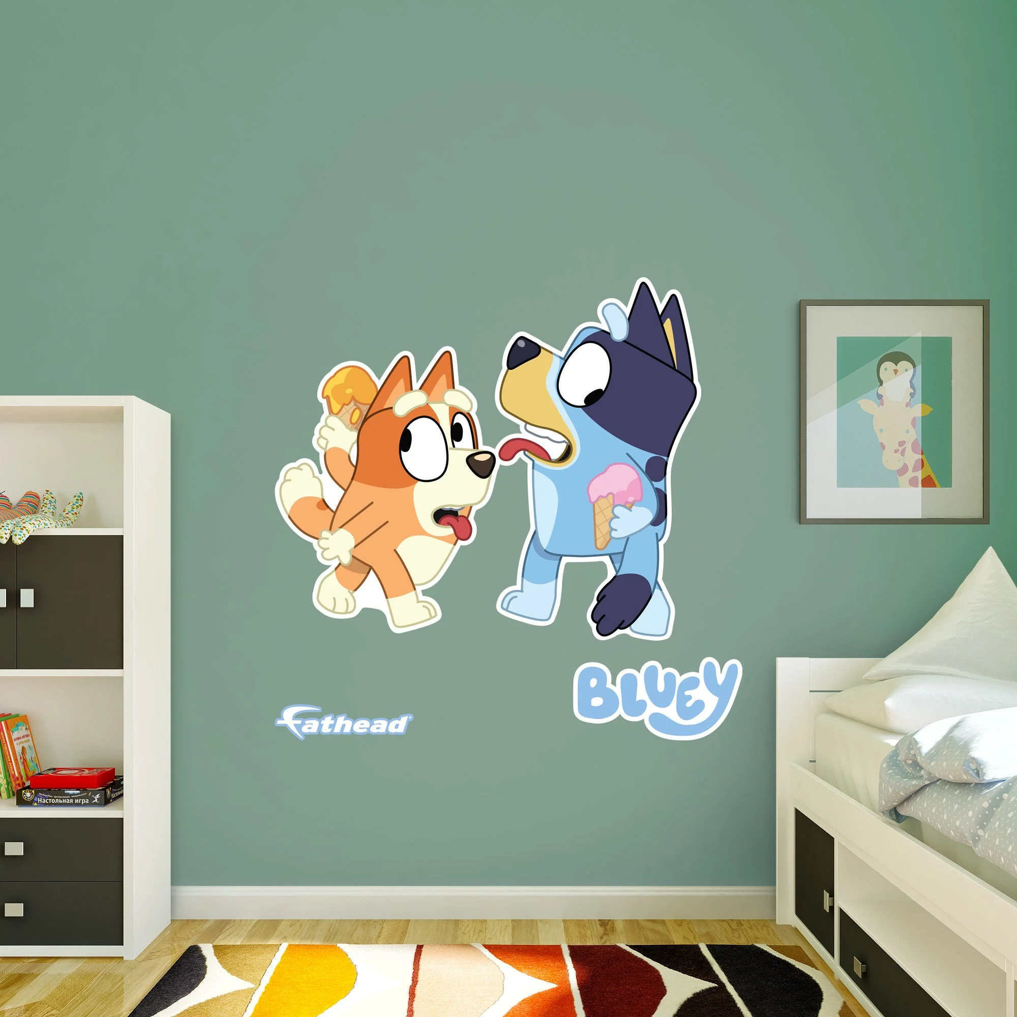Fathead Bluey: Bluey & Bingo Sisters Ice Cream Icon - Officially Licensed BBC Removable Adhesive Decal