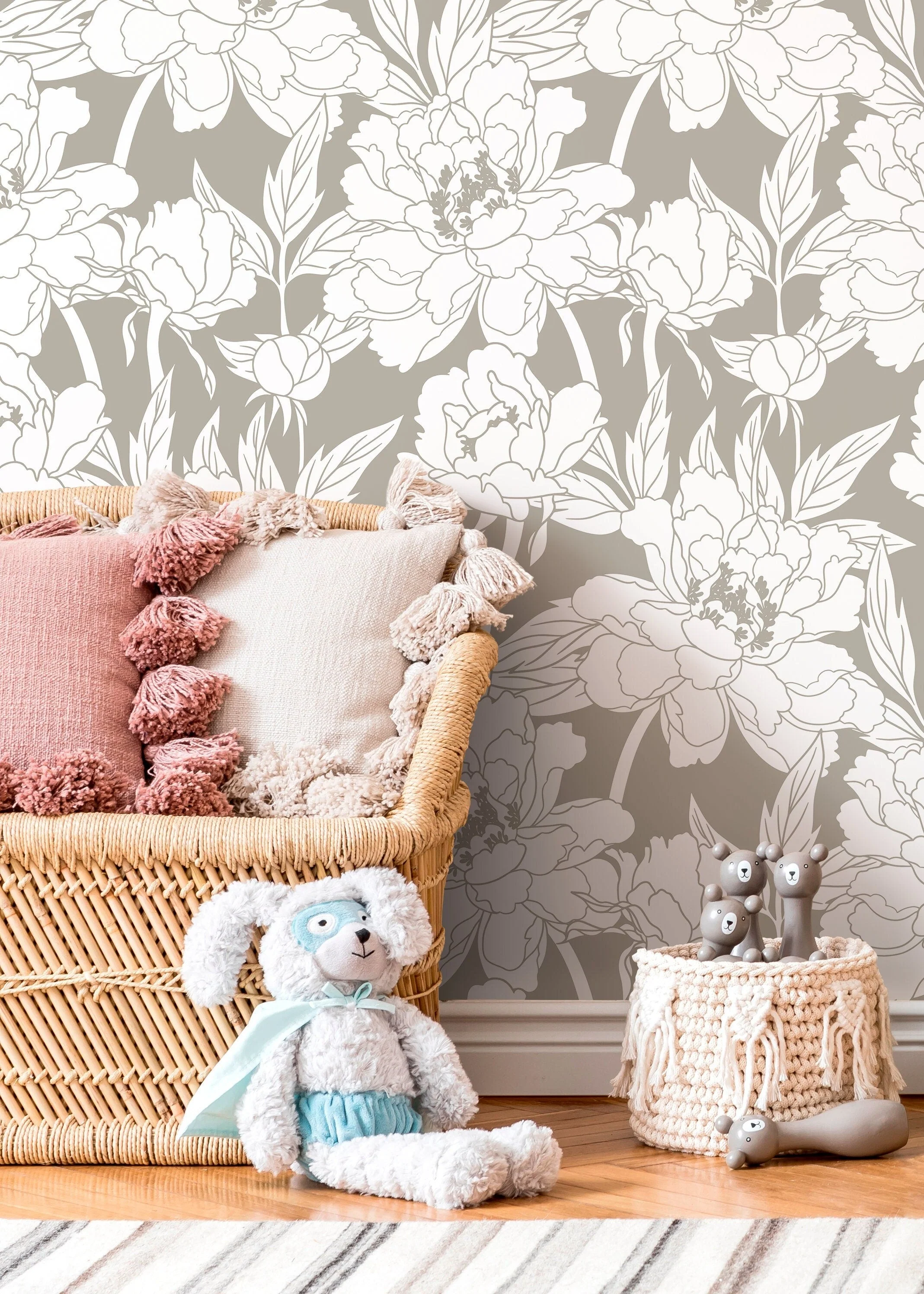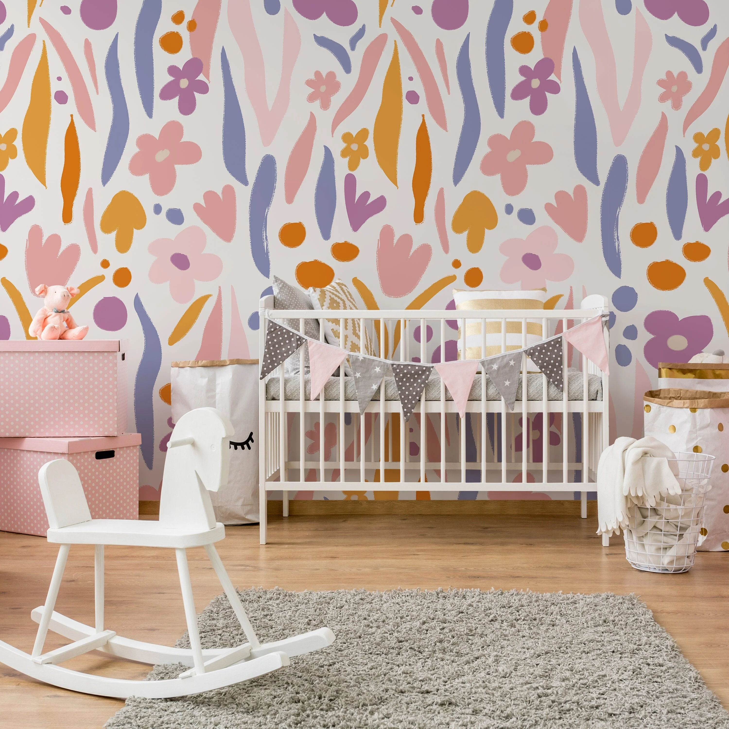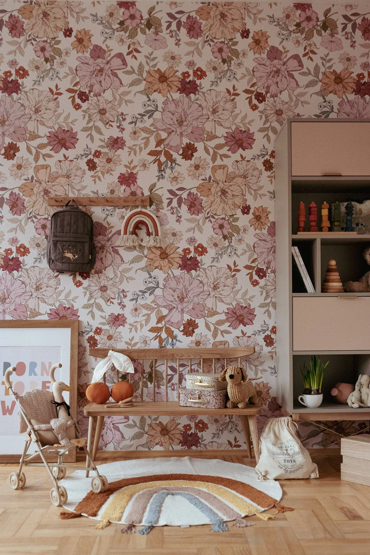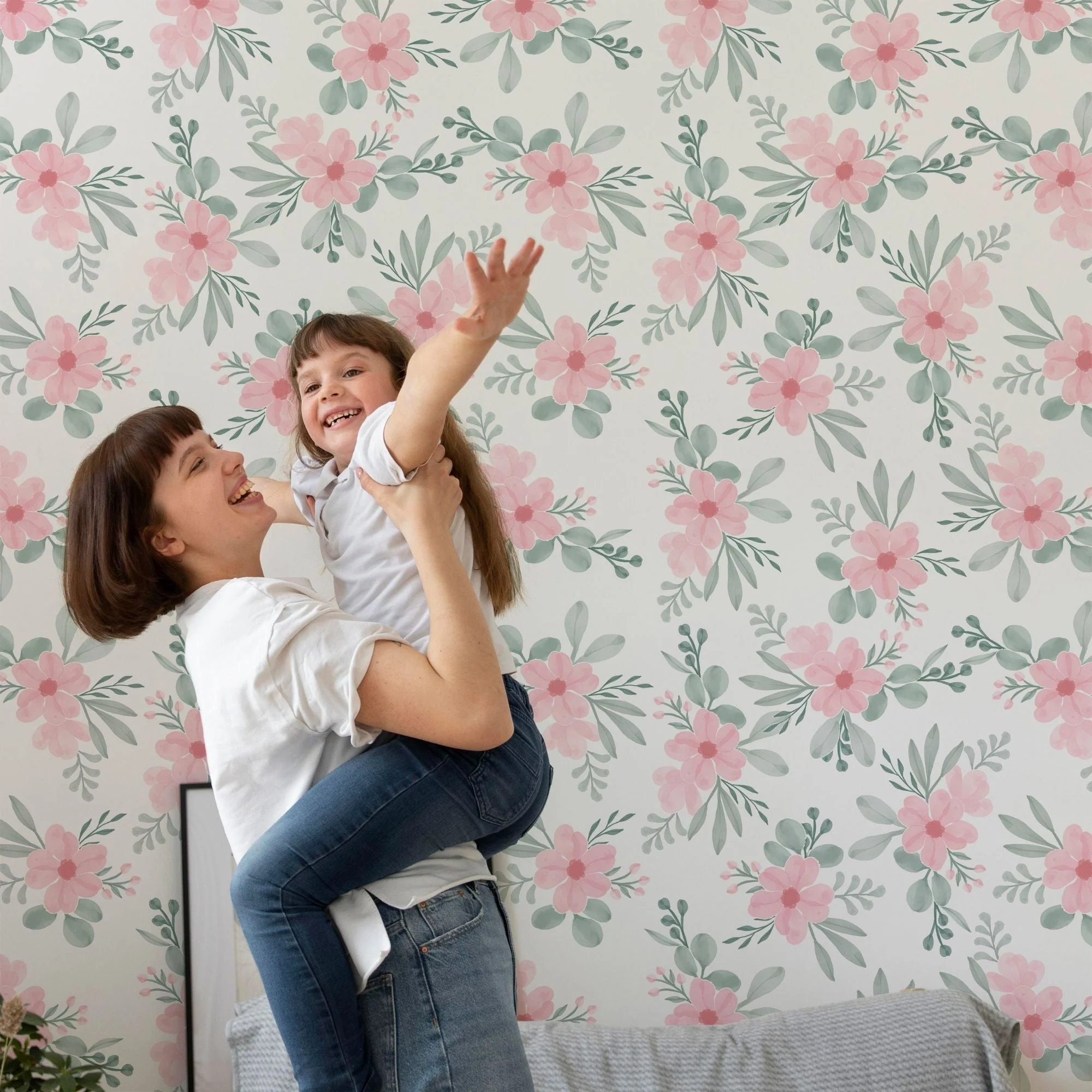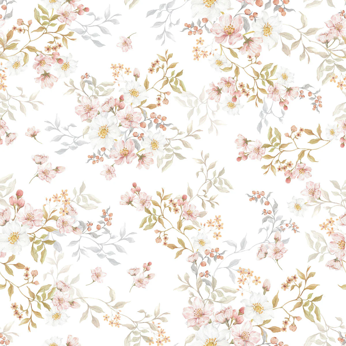 TeepeeJoy Flower Wallpaper for Nursery and Kids Rooms - Blush Blossom Serenity