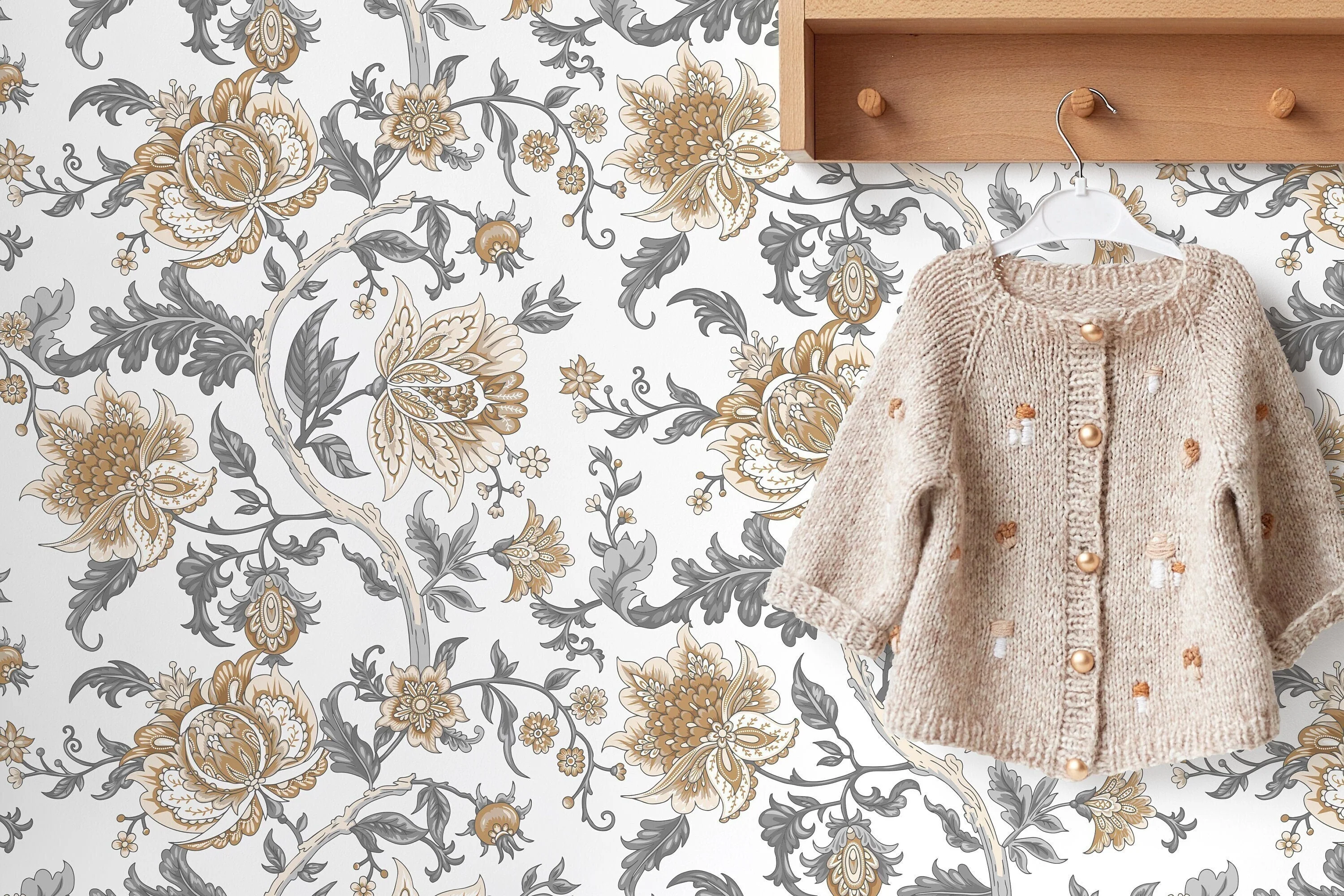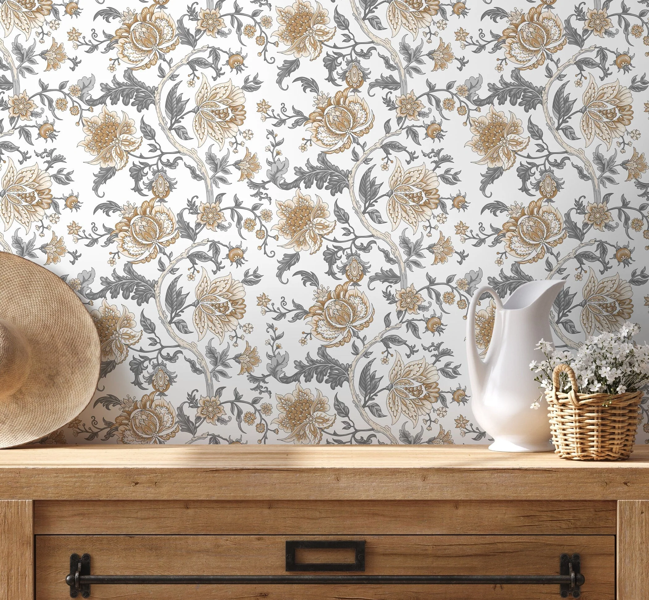 Ondecor Neutral Vintage Floral Peel and Stick Removable Wallpaper Room Decor - D130